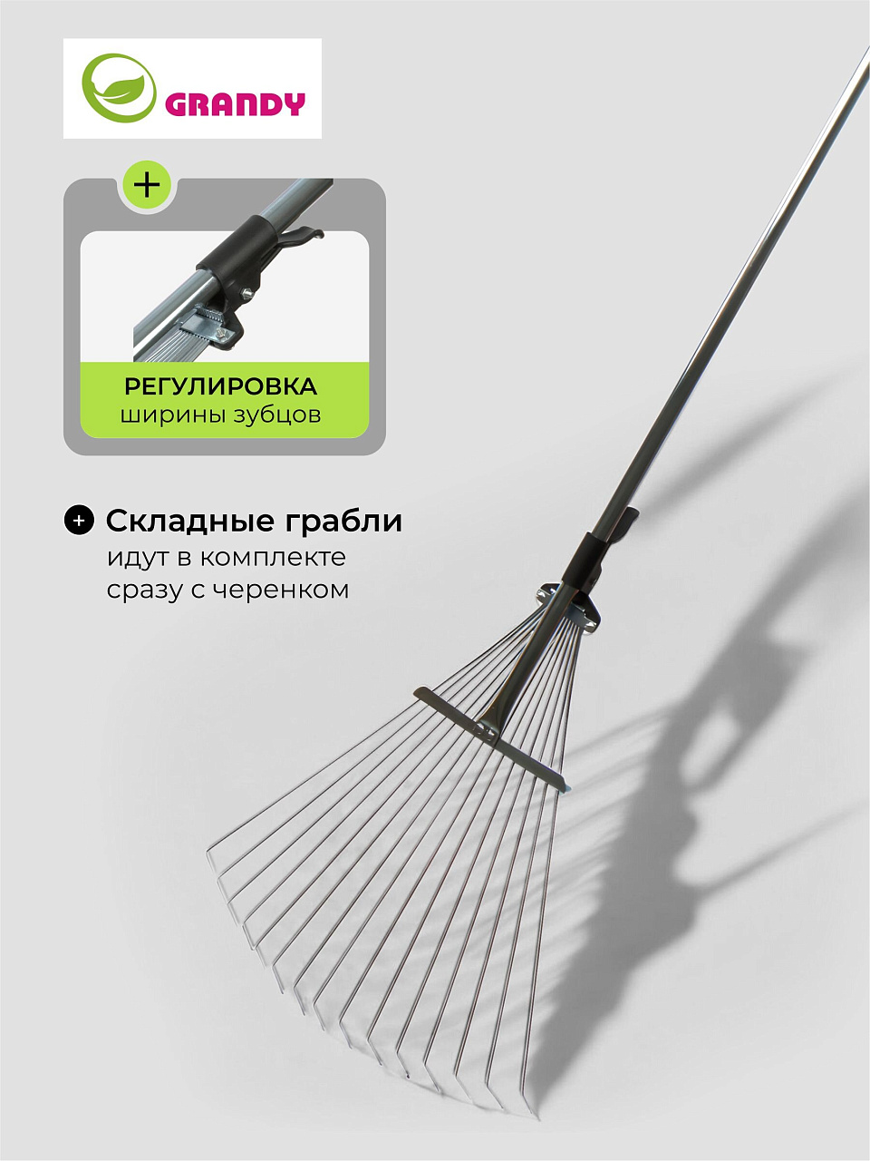 Вы можете приобрести «Грабли веерные, 15 зуб, металл, Grandy, Grandy, 15.5-52х120-155 см, раздвижной, черенок металлический, 402505» и другие товары в нашем интернет-магазине в Брянске по низким ценам и с бесплатным самовывозом.
