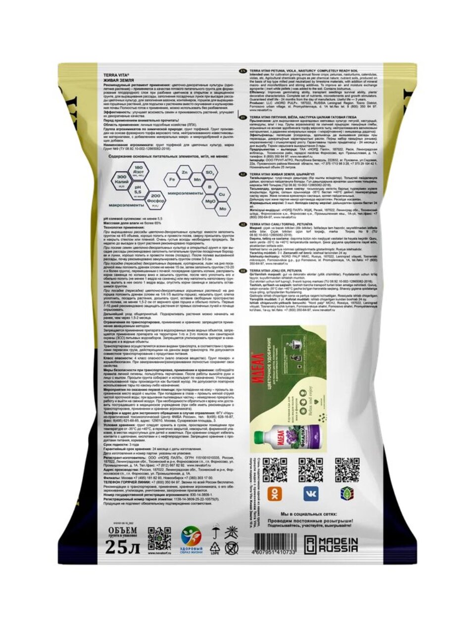 Грунт Живая земля для петуний, виол, настурций, 25 л — идеальный выбор для яркого цветения: натуральный состав, быстрый рост, удобный объём по выгодной цене.