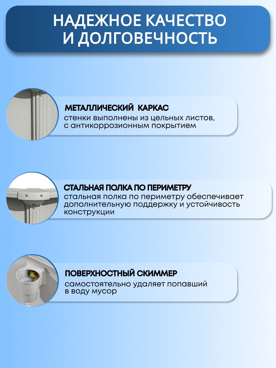 - встроенный скиммер для автоматической очистки водной поверхности: поддерживает чистоту воды без лишних усилий;