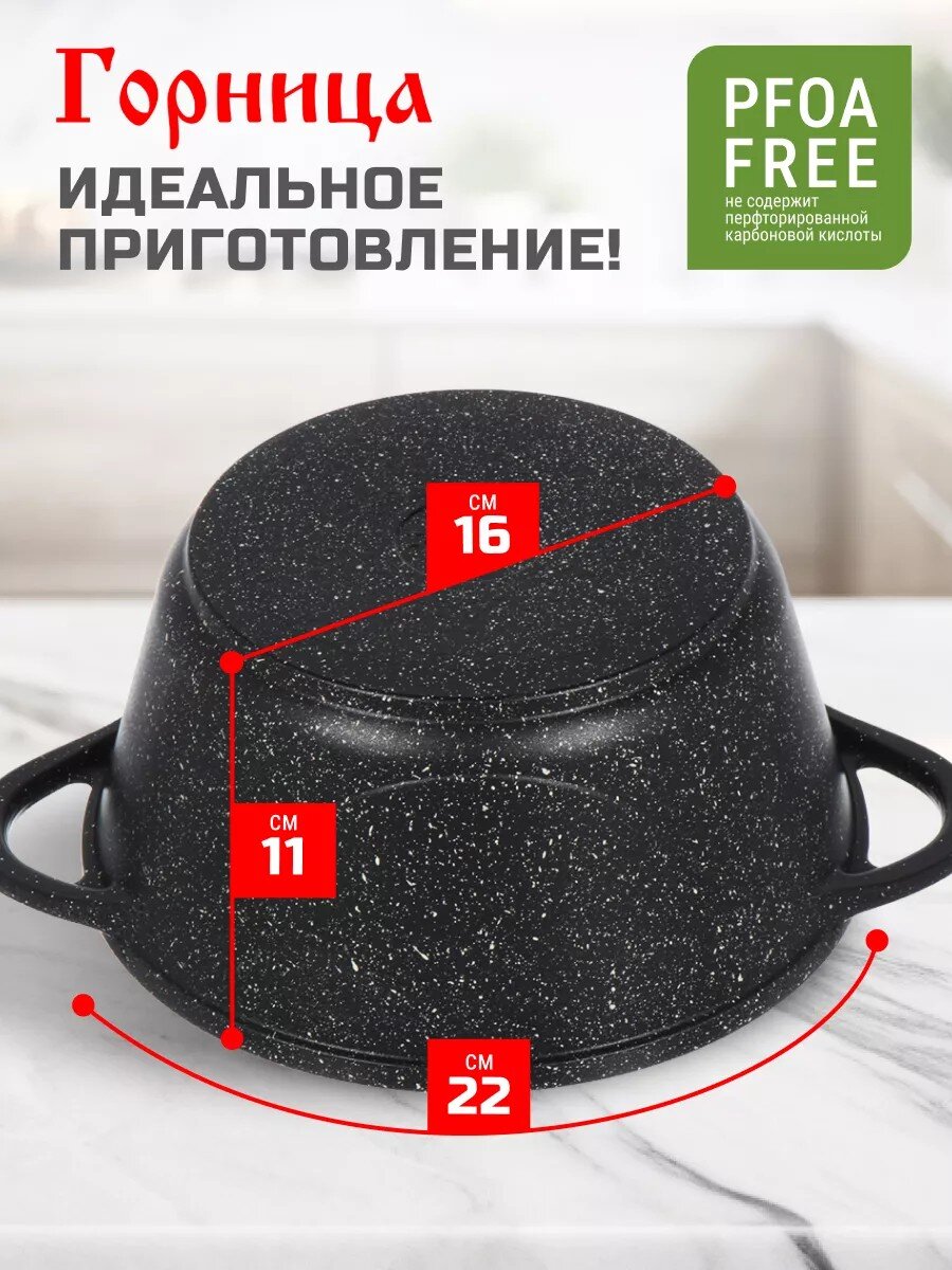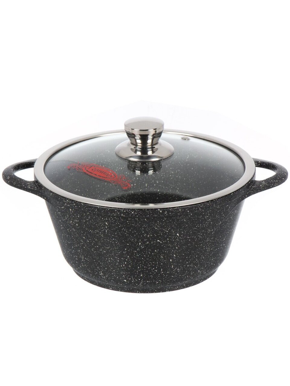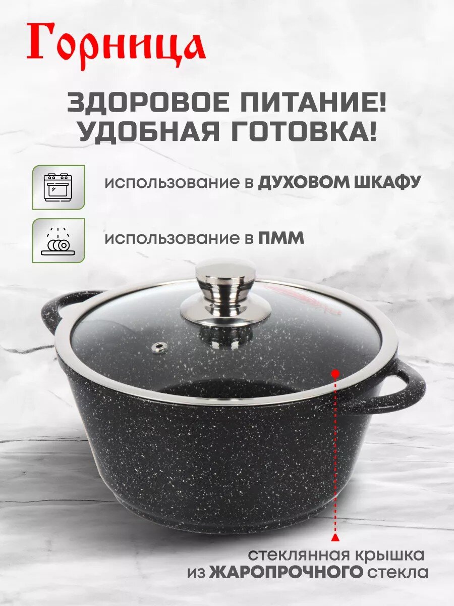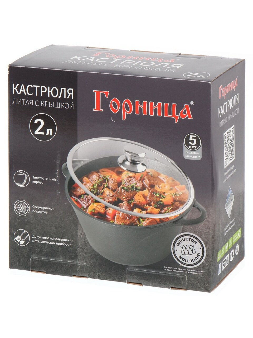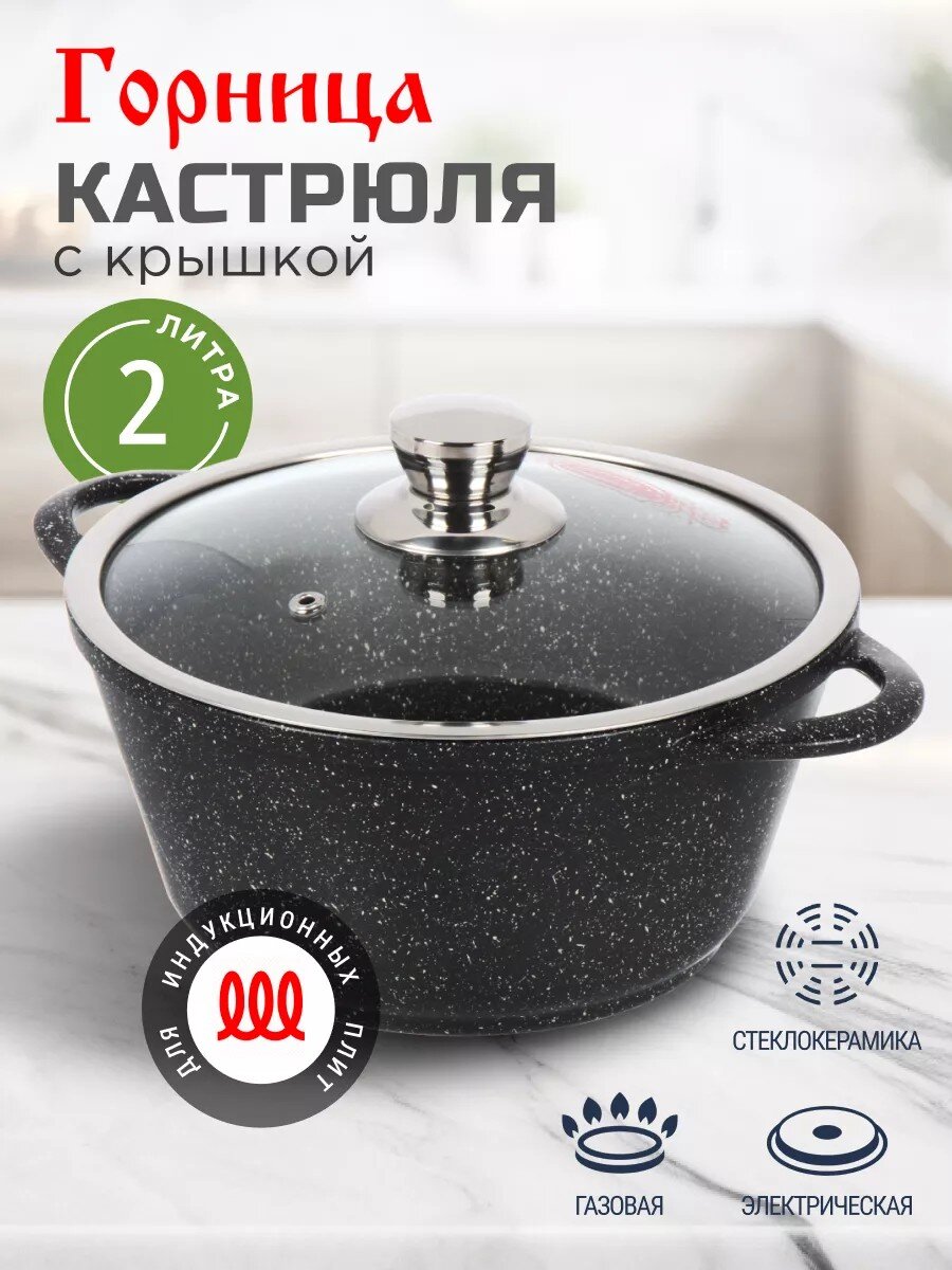 Кастрюля Горница Гранит Induction 2 л: антипригарное гранитное покрытие, подходит для индукции, стеклянная крышка, идеальна для дома и дачи.