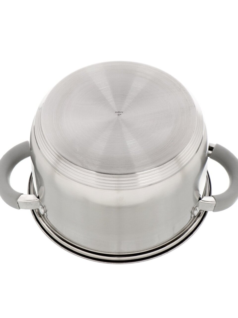 Вы можете приобрести «Кастрюля нержавеющая сталь, 3.9 л, крышка стекло, силиконовые ручки, Mallony, Felicità, 009388, индукция» и другие товары в нашем интернет-магазине в Смоленске по низким ценам и с бесплатным самовывозом.