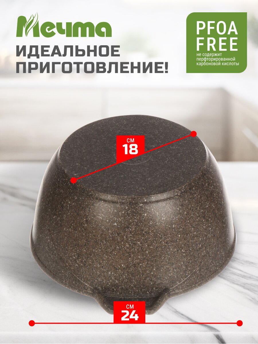 Кастрюля алюминиевая 4 л с гранитным антипригарным покрытием и стеклянной крышкой «Мечта Premium» — универсальное решение для дома и дачи. Готовьте без пригорания, экономьте время на мытье, наслаждайтесь стильным дизайном цвета мокко.