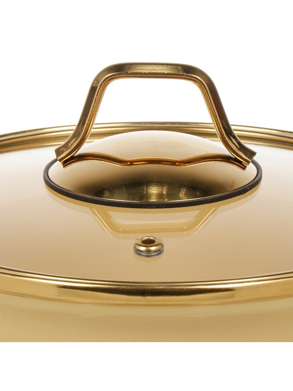 Кастрюля бренда RasheL сделана из высококачественной стали с блестящим эмалированным покрытием внутри и снаружи.