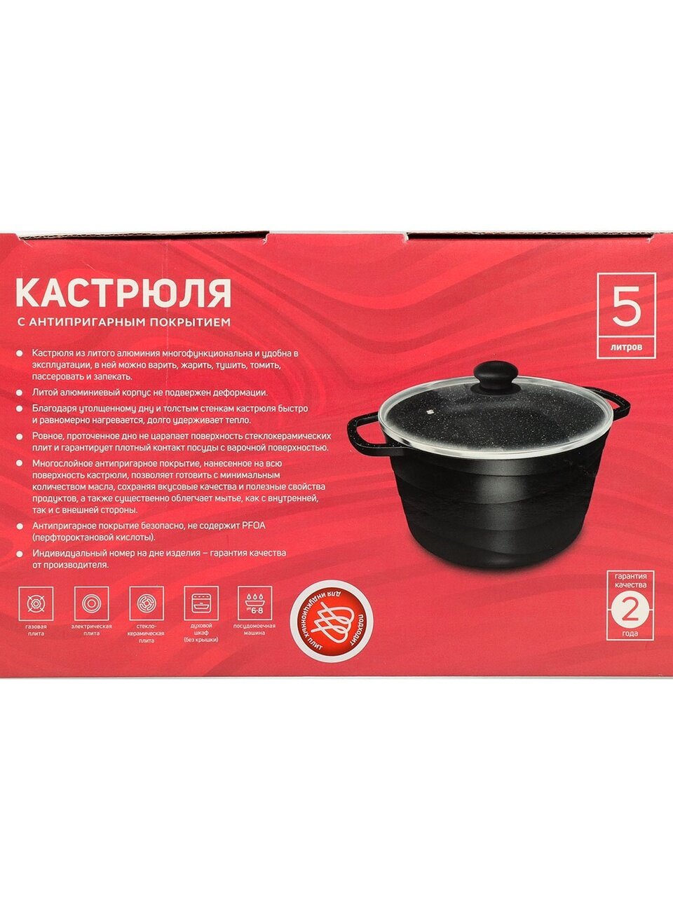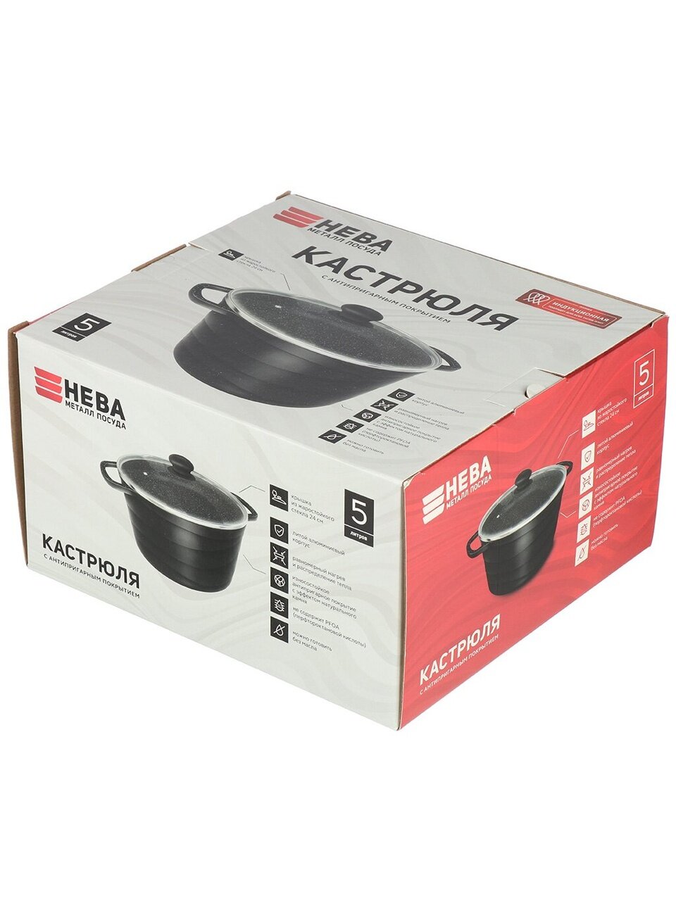 Кастрюля 5 л с антипригарным гранитным покрытием Нева Металл Посуда: готовьте без пригорания, экономьте время и силы на кухне, подходит для любых плит.