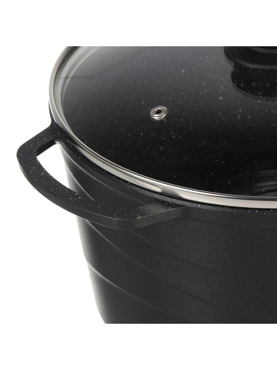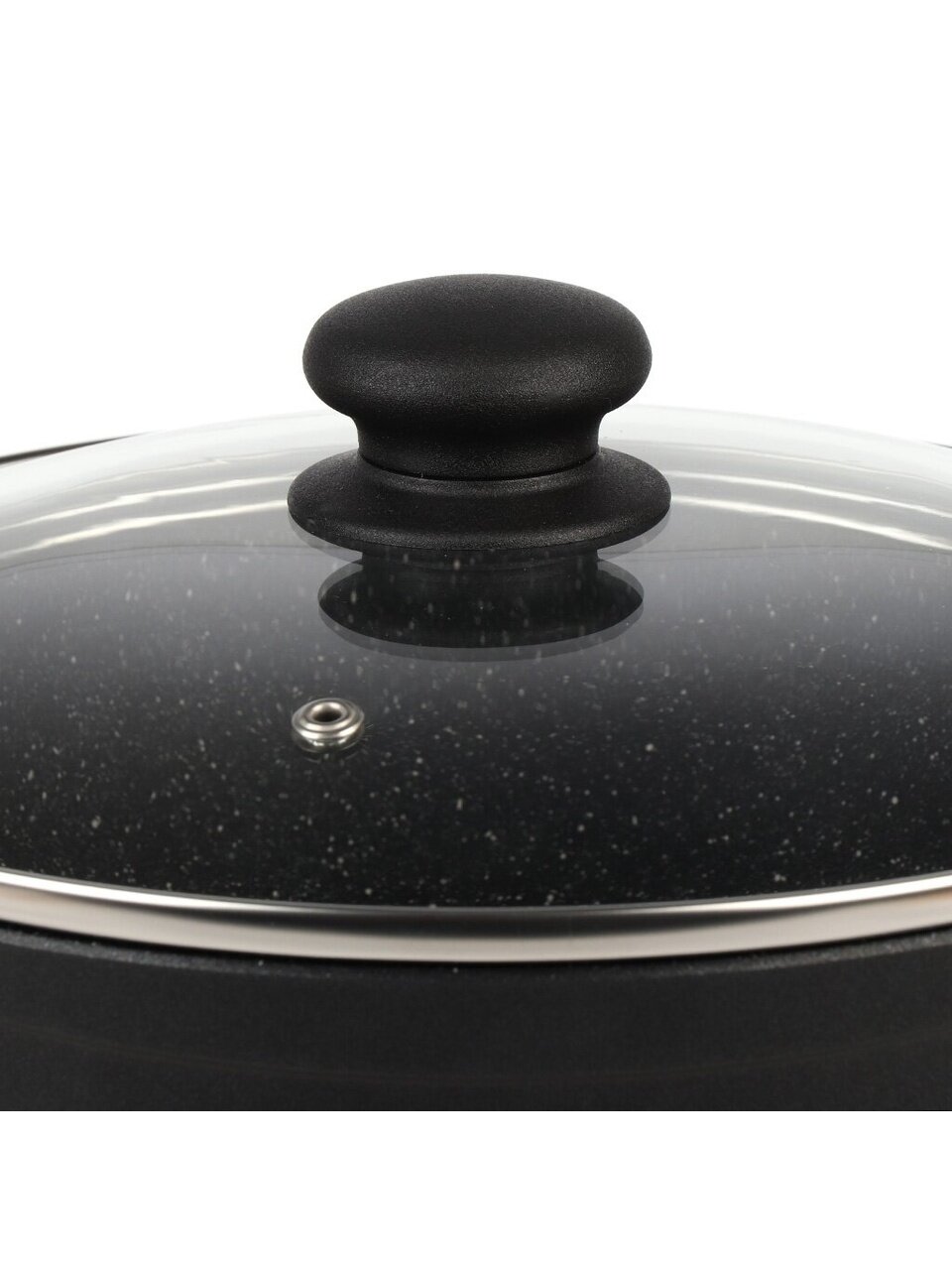 - Прочный алюминиевый корпус, толстое дно 6,8 мм, стеклянная крышка с клапаном — оптимальный объём 5 л для семьи, диаметр 24 см