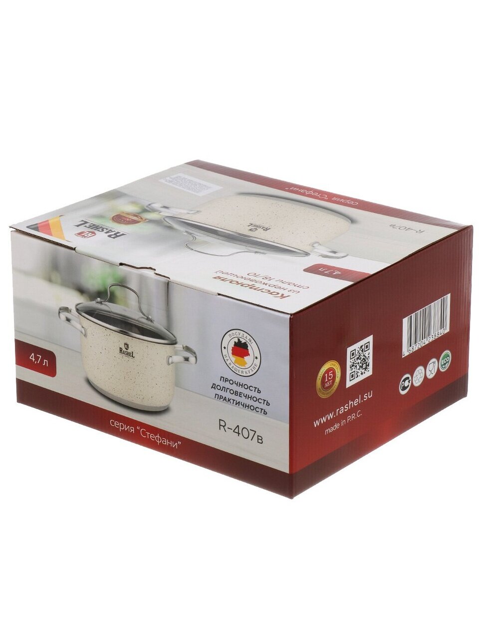 Если вы ищете, какую кастрюлю выбрать для индукционной плиты или универсальную посуду для ежедневного использования, RasheL R-407в — экспертное решение. Благодаря прочной нержавеющей стали и капсульному дну, кастрюля быстро нагревается, не деформируется и экономит электроэнергию. Встроенная мерная шкала помогает точно соблюдать рецепты, а стеклянная крышка с выпускным клапаном предотвращает выкипание и сохраняет вкус блюд.