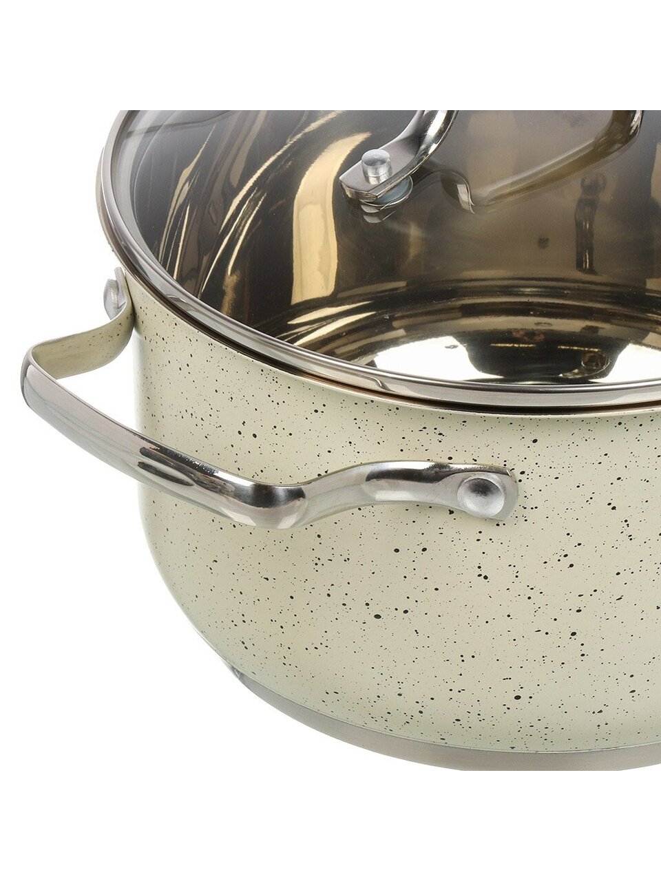 Как использовать кастрюлю RasheL? Готовьте супы, макароны, пельмени или кашу для всей семьи — объём 4.7 литра оптимален для ежедневных и праздничных блюд. Если сравнивать, чем отличается эта модель от эмалированных или алюминиевых аналогов, — нержавеющая сталь не впитывает запахи, устойчива к коррозии и не требует деликатного ухода.