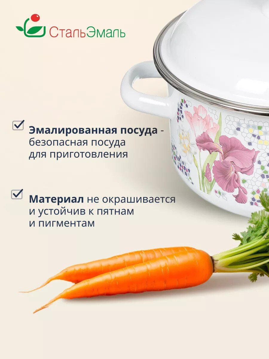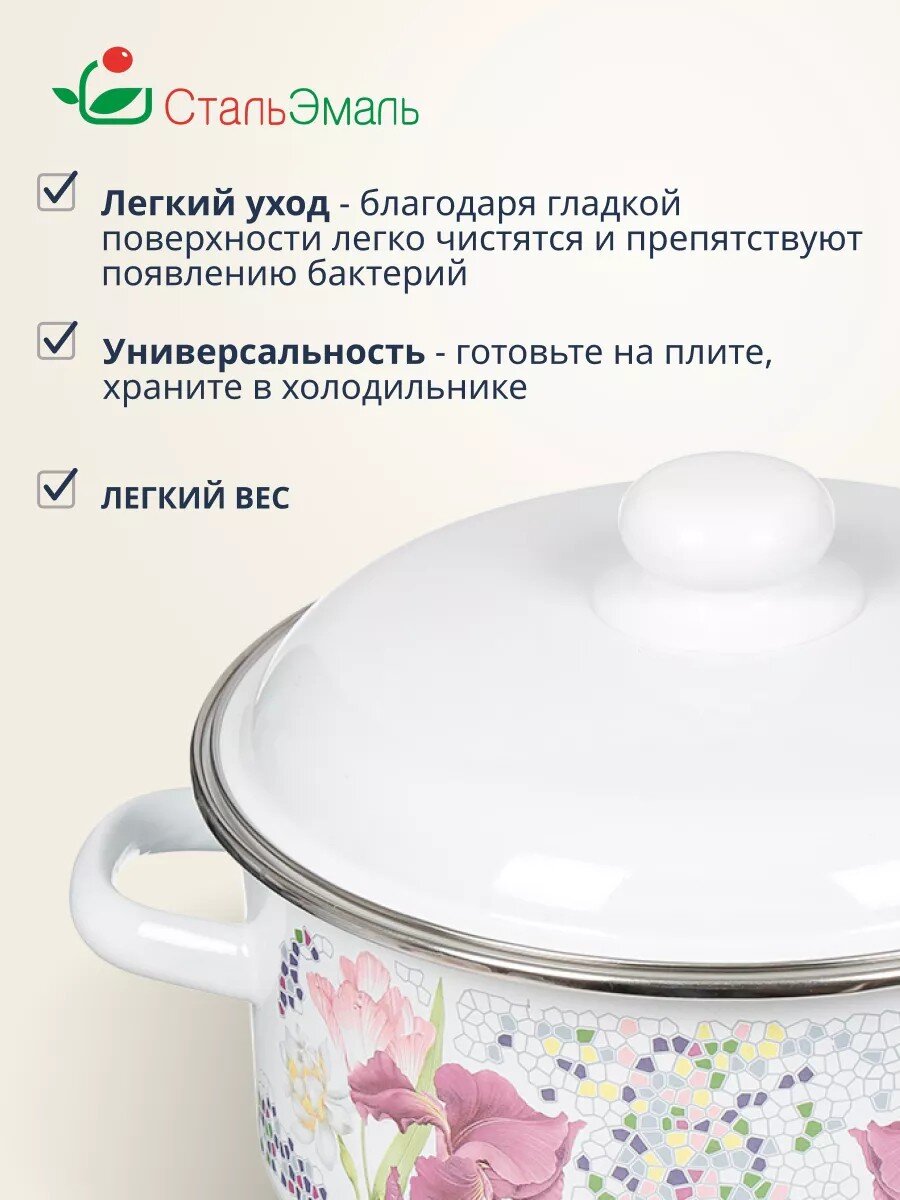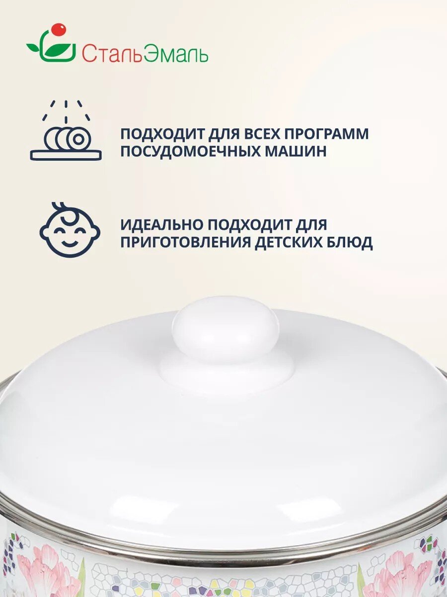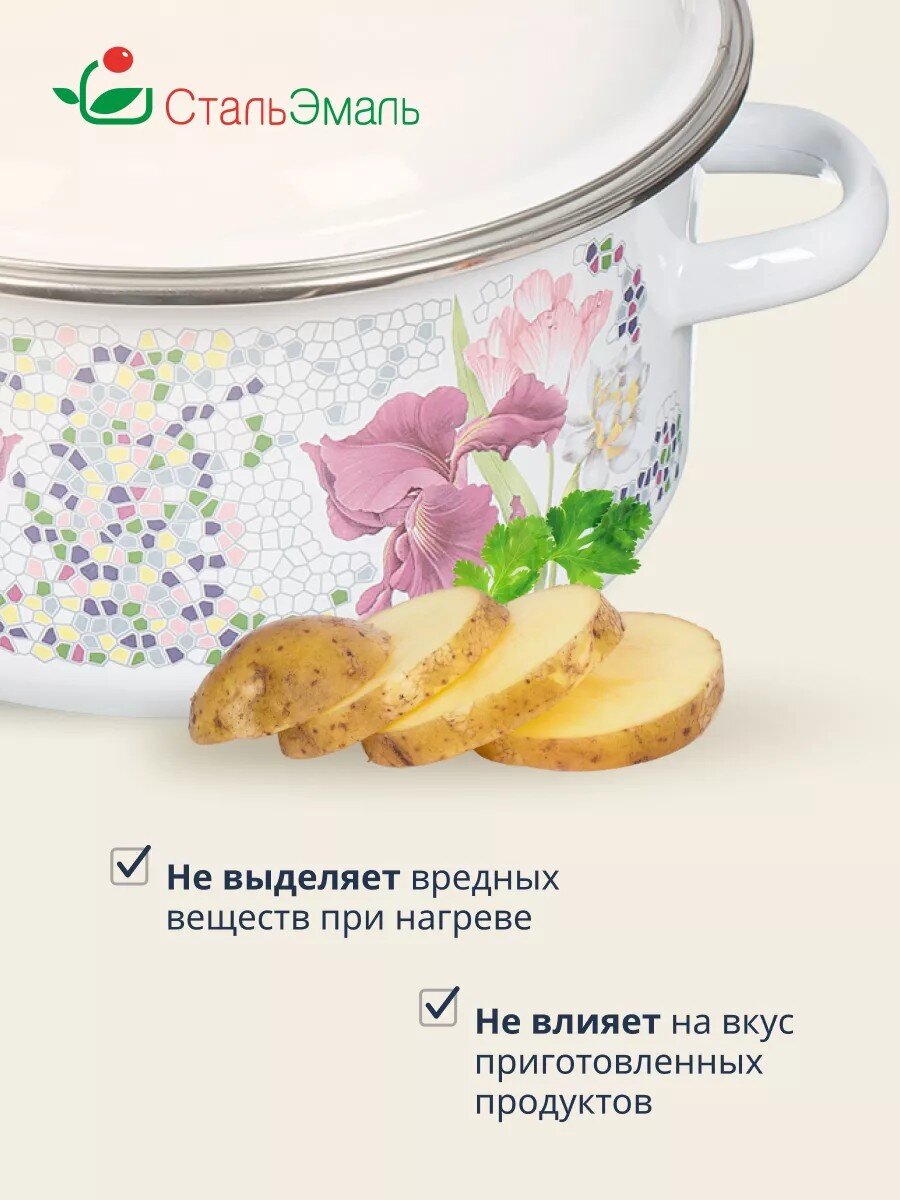 Кастрюля эмалированная 4 л СтальЭмаль Мозаика — универсальное решение для индукционных и газовых плит, долговечность и стиль для вашей кухни.