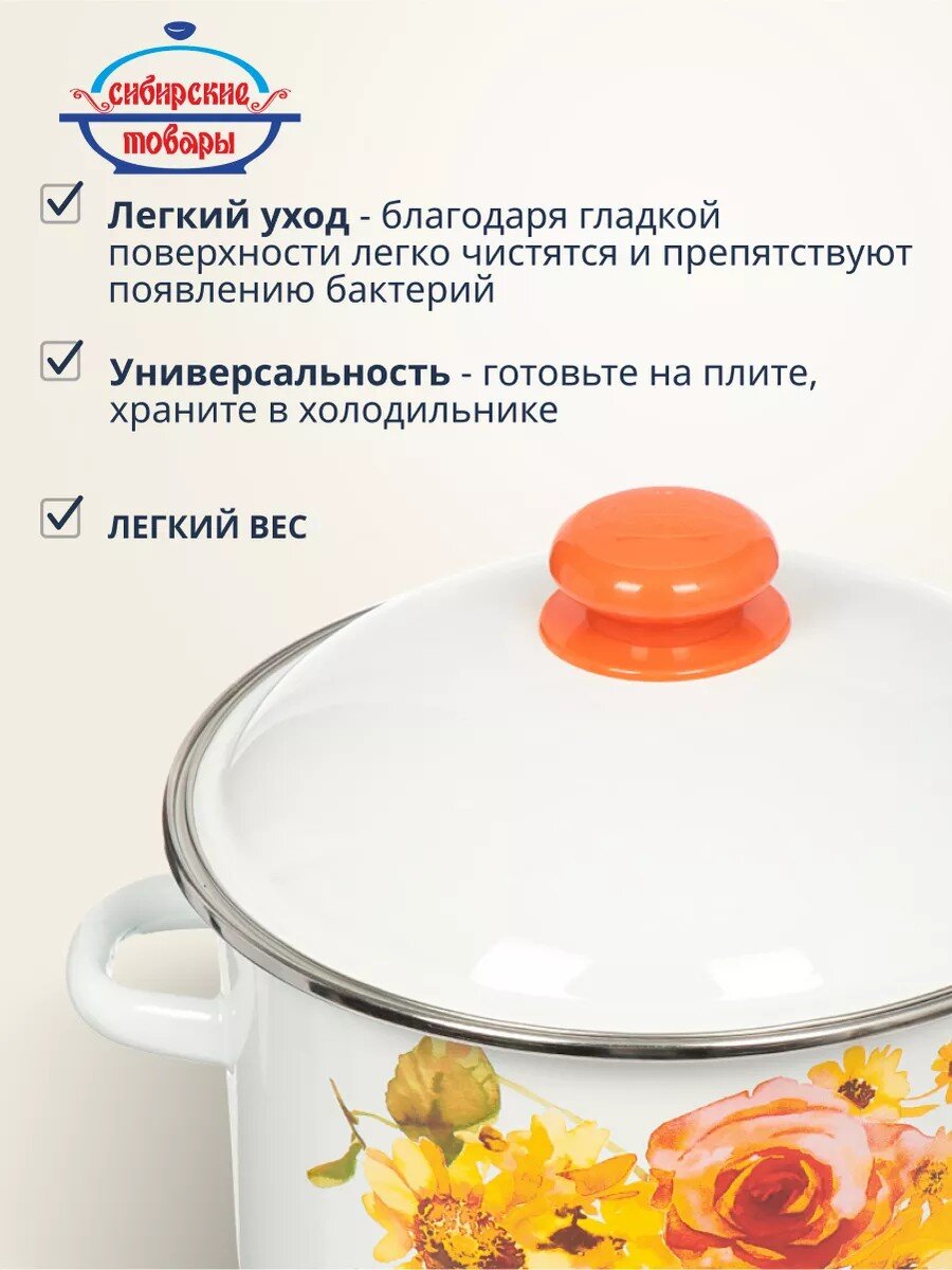 В отличие от моделей с антипригарным слоем, эмалированная кастрюля не выделяет вредных веществ при нагреве и подходит для приготовления детских блюд. Если вы спрашиваете, подходит ли кастрюля для посудомоечной машины — да, уход максимально простой. Как использовать кастрюлю для разных плит? Она совместима с газовыми, электрическими, стеклокерамическими и индукционными плитами — универсальное решение для любой кухни или дачи. Для подарка — стильный дизайн из коллекции «Сибирские товары Весна».