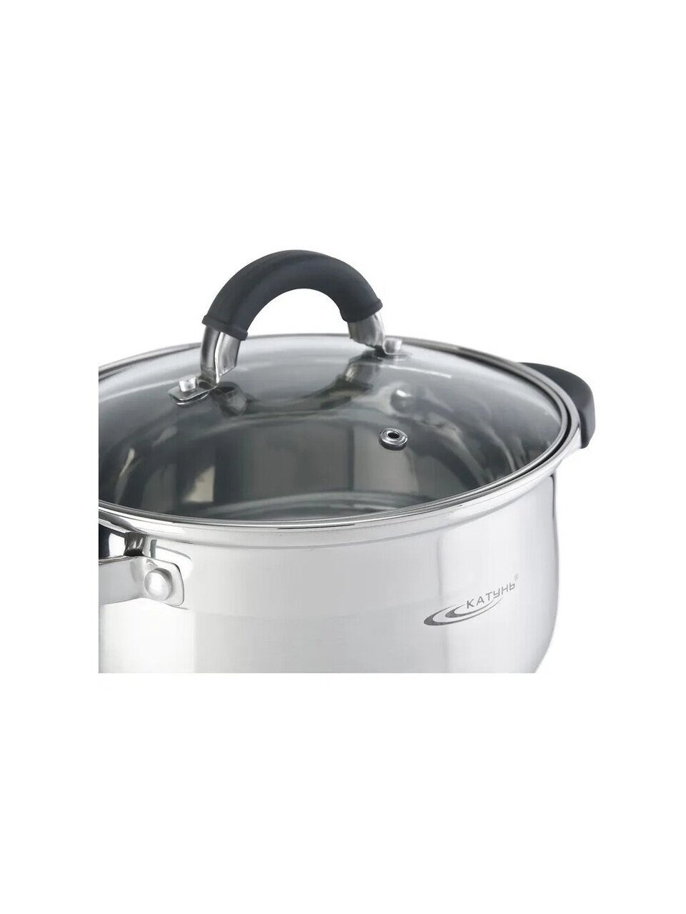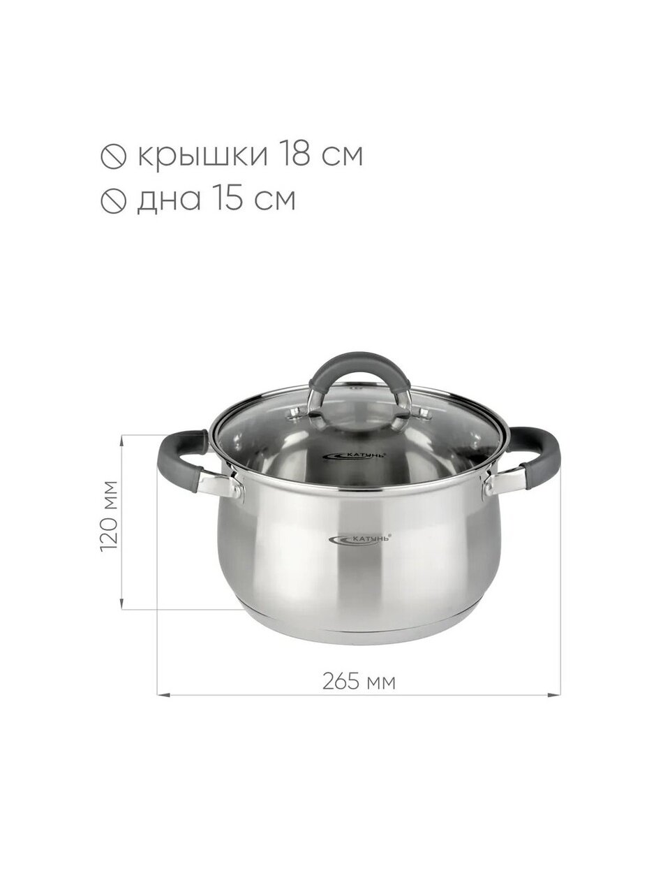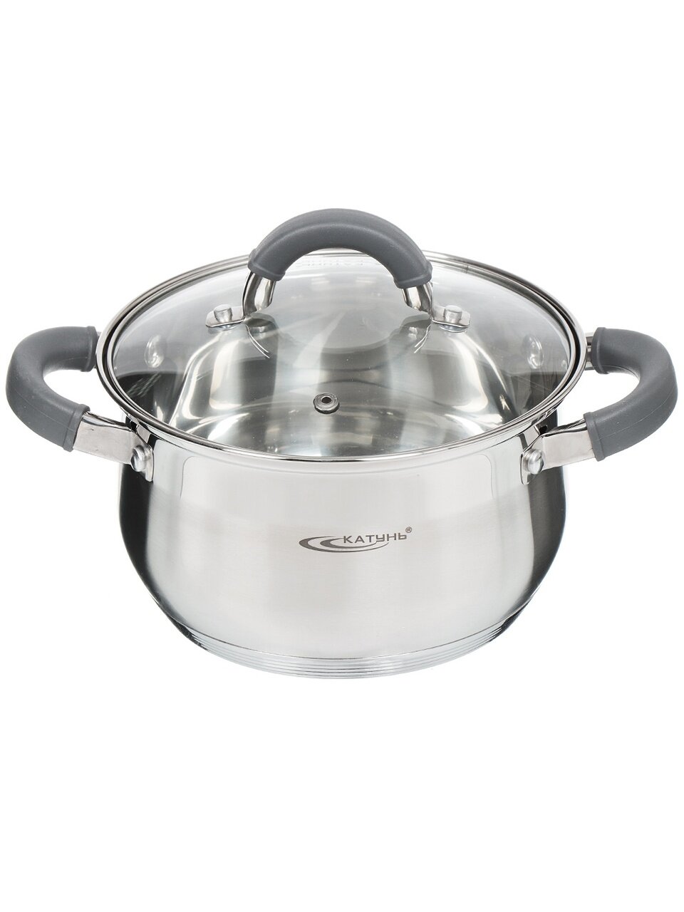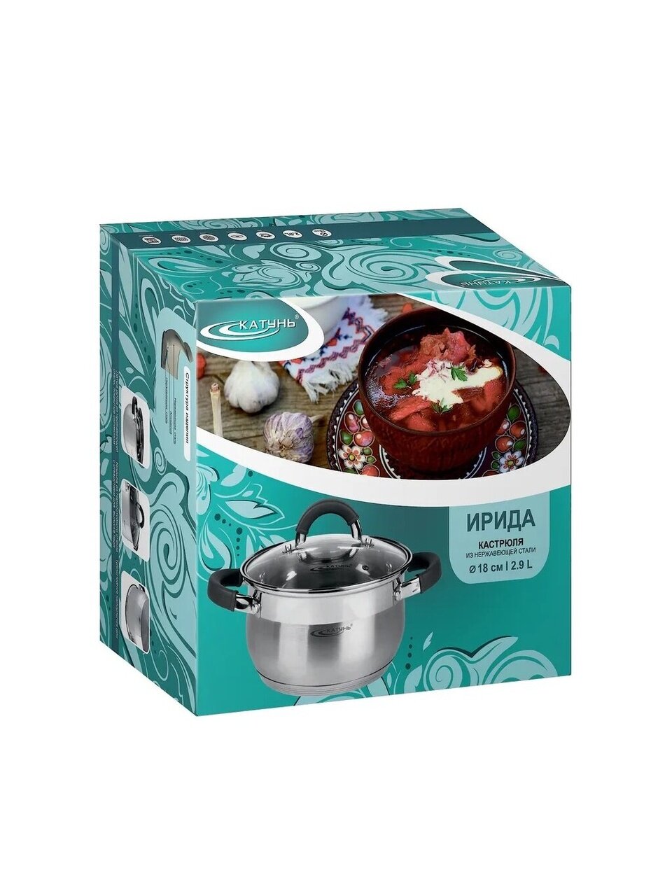 Кастрюля из нержавеющей стали 2.9 л Катунь Ирида: практичное решение для дома и дачи, подходит для индукции, стеклянная крышка, выгодная цена.