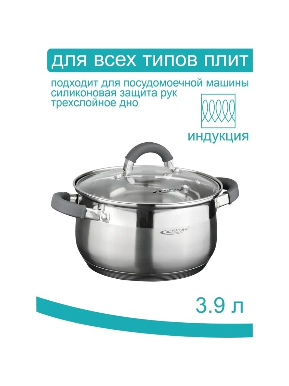 Кастрюля из нержавеющей стали 3.9 л Катунь Ирида: универсальное решение для индукционных плит, долговечность и стиль для кухни по выгодной цене
