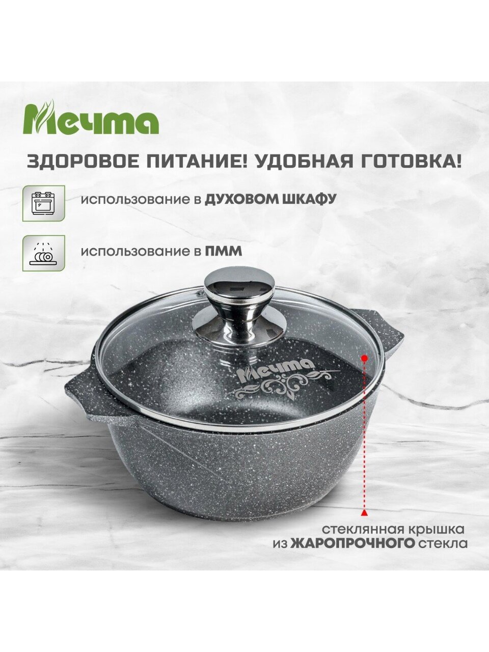Кастрюля «Мечта Гранит» 2 л: антипригарное гранитное покрытие, стеклянная крышка с клапаном, идеальный выбор для дома и дачи — купить выгодно онлайн.