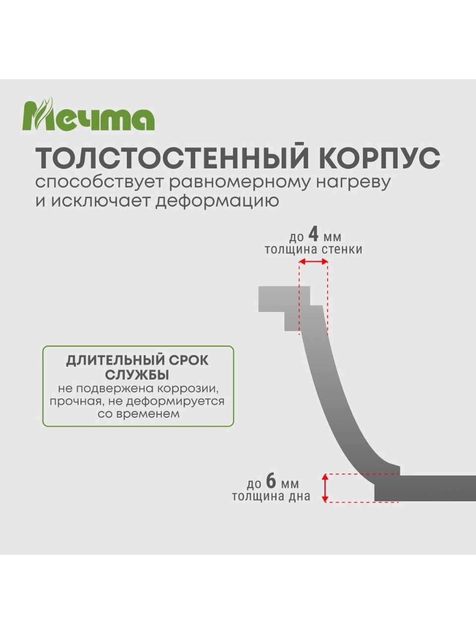 - Универсальность: для газовых, электрических, стеклокерамических плит и духовки — удобно дома, на даче, отличный подарок