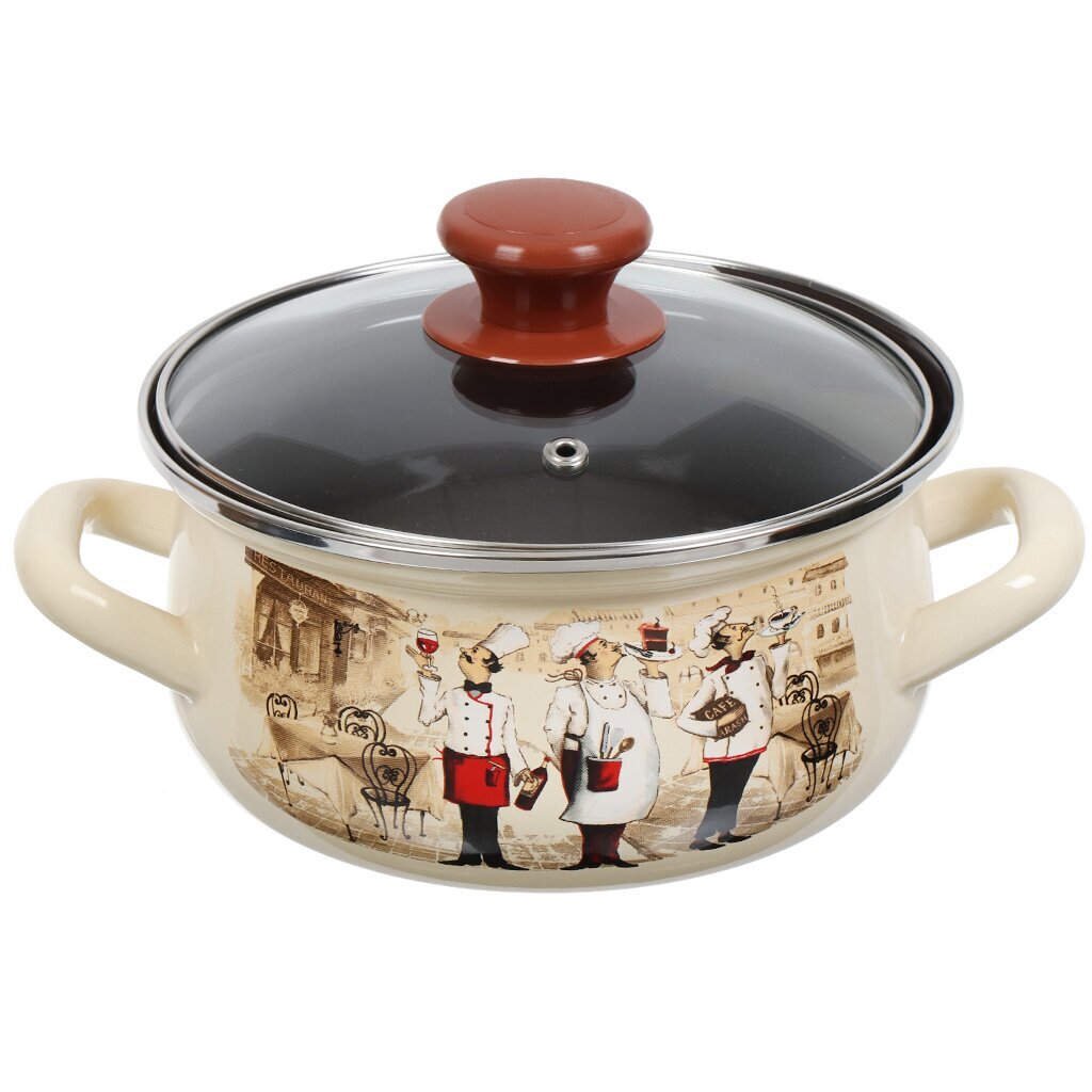 Кастрюля эмалированная 1.5 л с крышкой из стекла и декором: долговечное решение для приготовления каши, пельменей и риса дома и на даче.