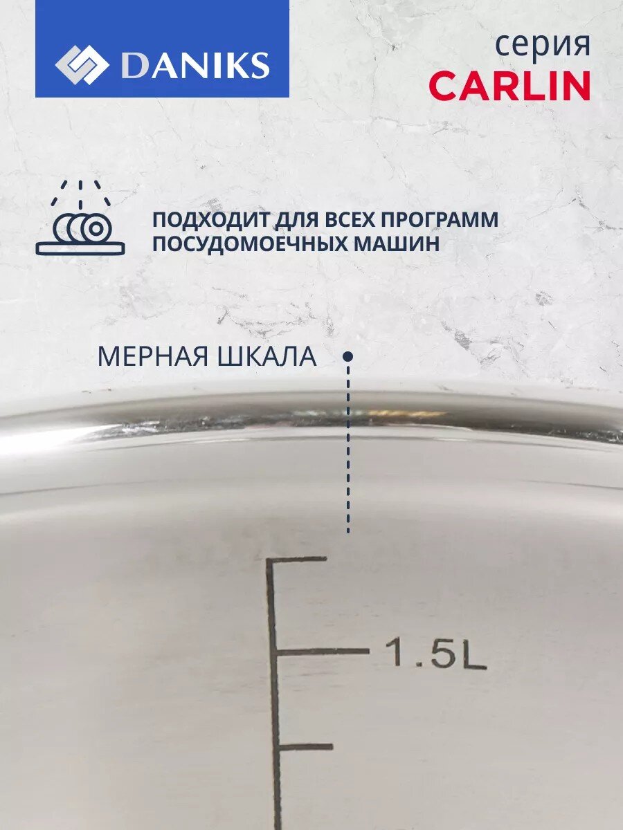 Кастрюля Daniks Карлин 1.8 л из нержавеющей стали — идеальный выбор для дома и дачи: подходит для индукции, долговечна, мерная шкала, стеклянная крышка.