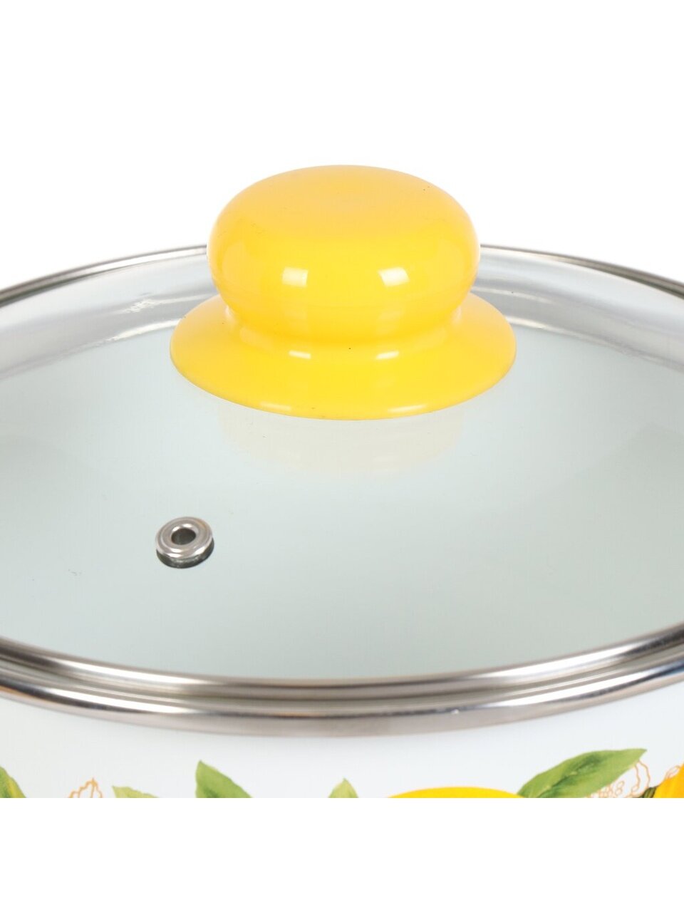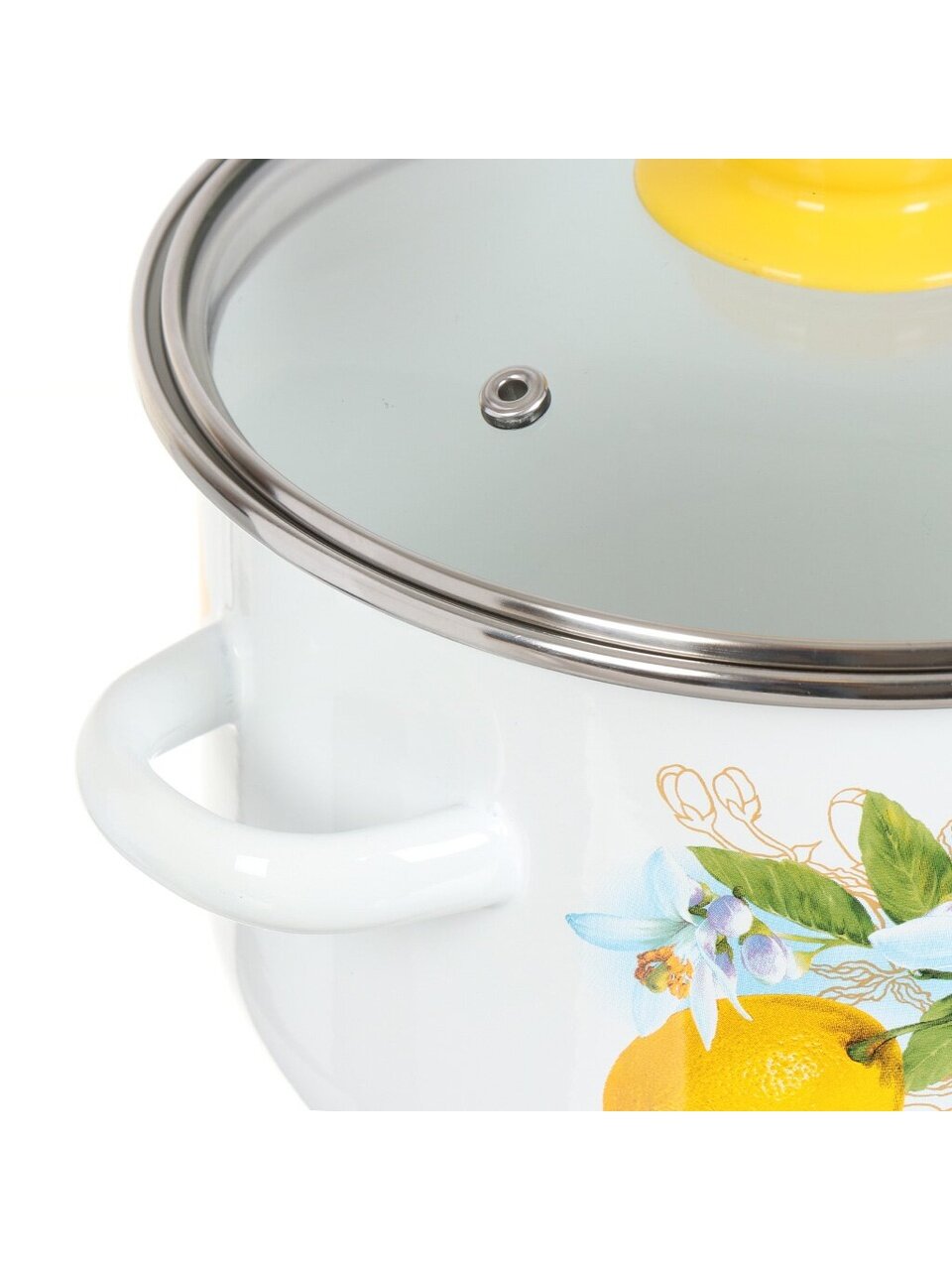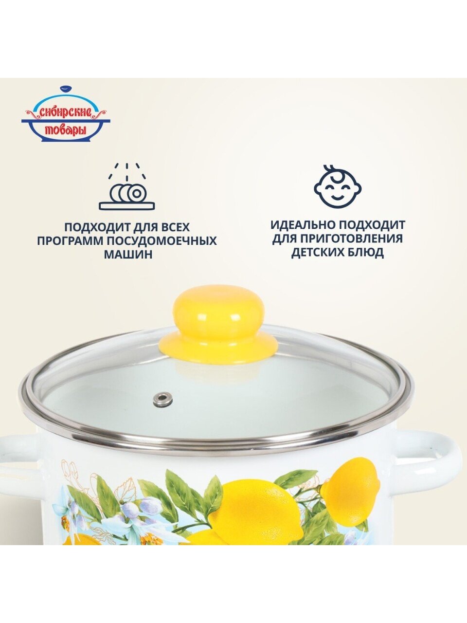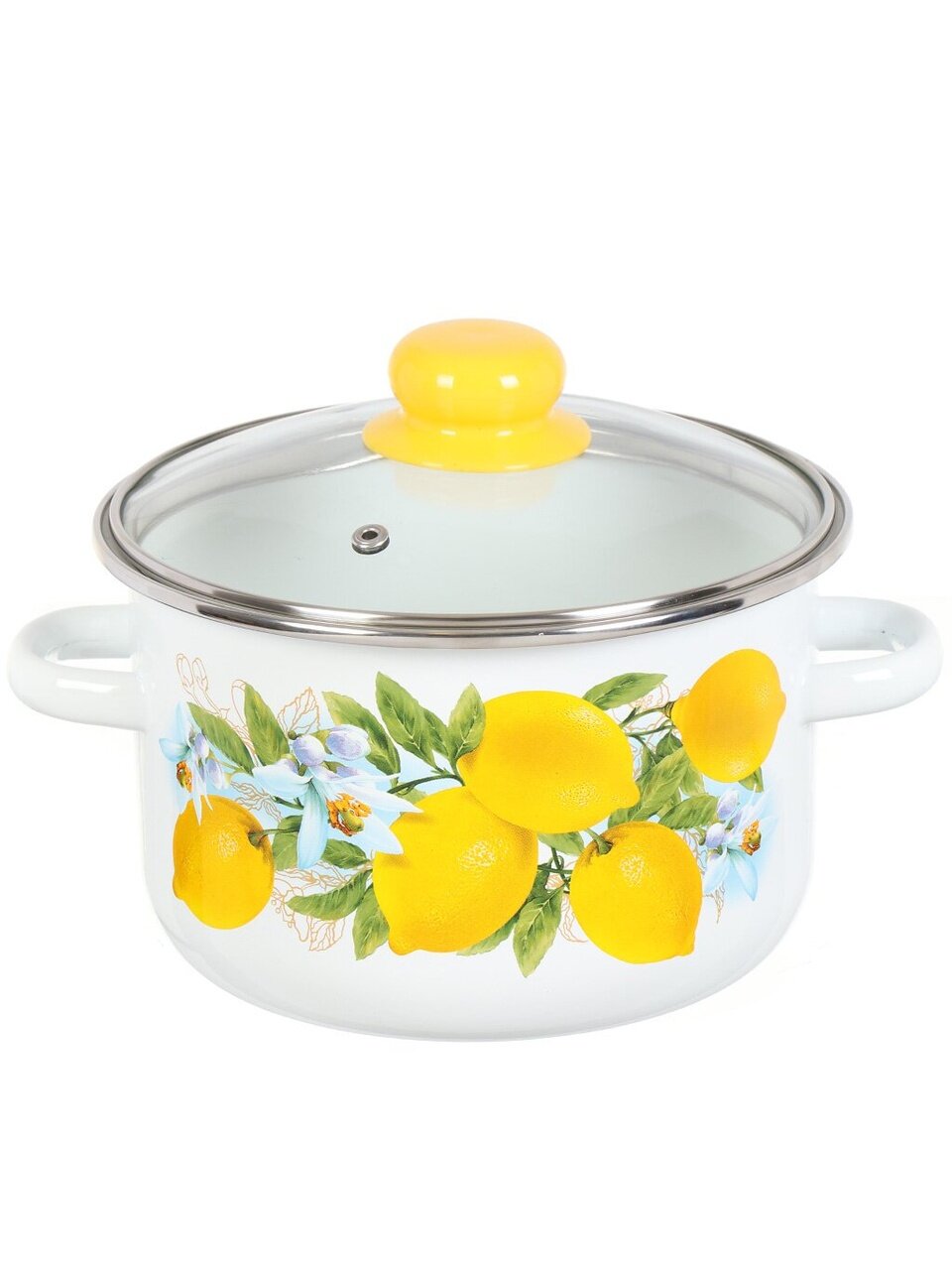 Кастрюля эмалированная сталь 3 л «Лимоны» — универсальный выбор для дома и дачи: подходит для индукционных плит, стеклянная крышка, стильный дизайн.