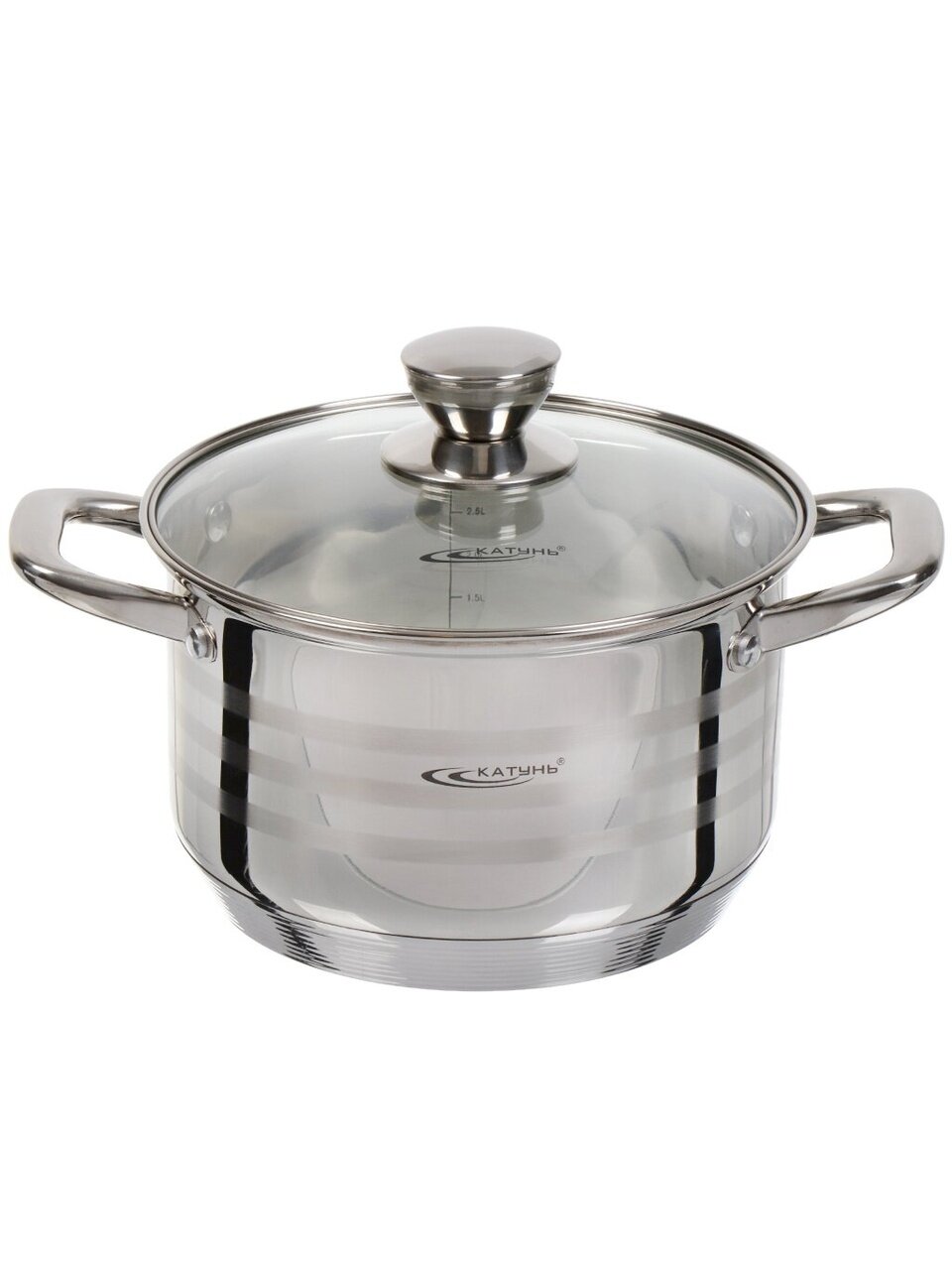 Вы можете приобрести «Кастрюля нержавеющая сталь, 3.5 л, крышка стекло, Катунь, Элис, КТ16-D-20, индукция» и другие товары в нашем интернет-магазине в Обнинске по низким ценам и с бесплатным самовывозом.
