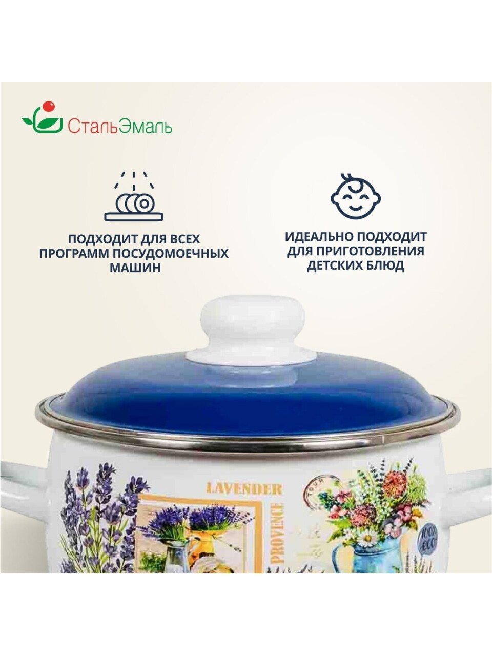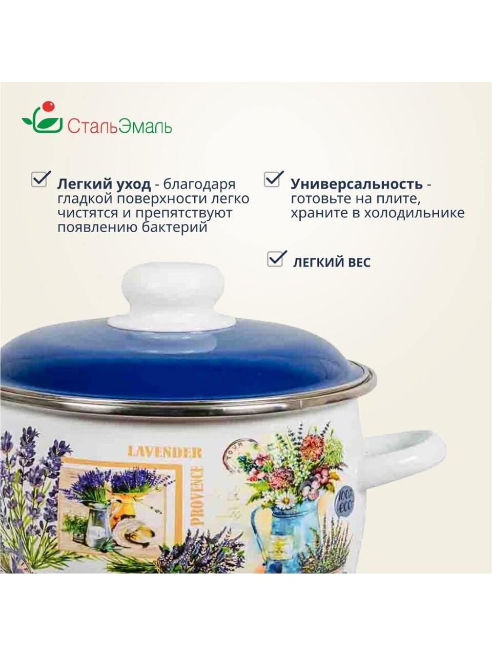 Кастрюля эмалированная СтальЭмаль Горная лаванда 3 л — универсальное решение для дома и дачи: готовьте супы, макароны и каши на любой плите, не тратя лишнего времени на уход.