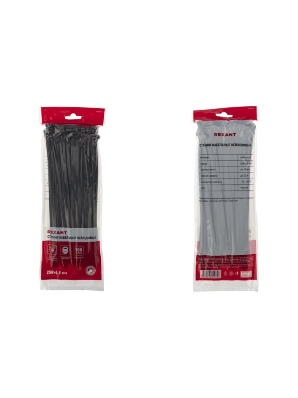 Откройте для себя надежное решение для организации кабелей с кабельными стяжками Rexant. Эти черные нейлоновые стяжки размером 4.8х250 мм идеально подходят для упорядочивания проводов и кабелей в доме или офисе. Комплект из 100 штук обеспечивает долговечное и удобное использование. Прочный нейлон гарантирует стойкость к износу, а стильный черный цвет добавляет эстетичность. Произведено в Китае.