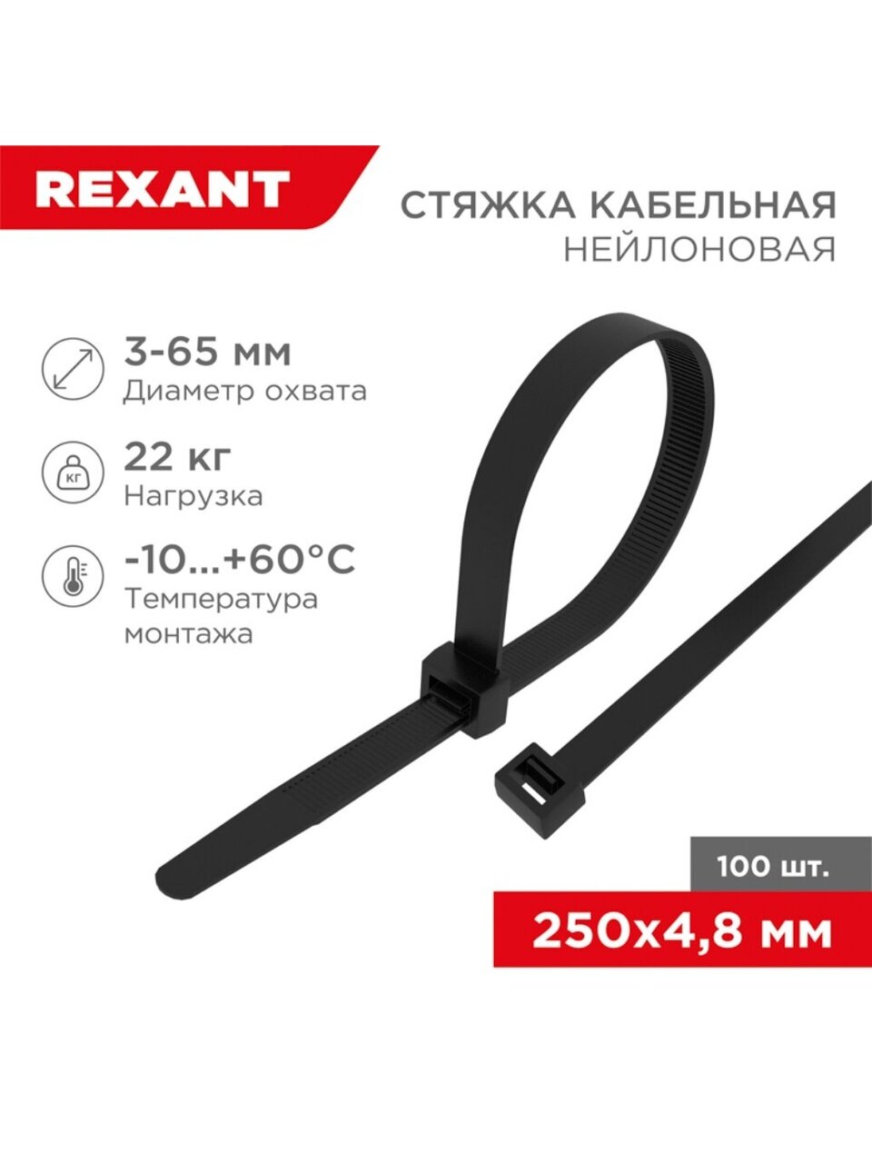 Вы можете приобрести «Хомут стяжной кабельный, 4.8х250 мм, нейлон, 100 шт, черный, Rexant, 07-0251-5» и другие товары в нашем интернет-магазине в Курске по низким ценам и с бесплатным самовывозом.