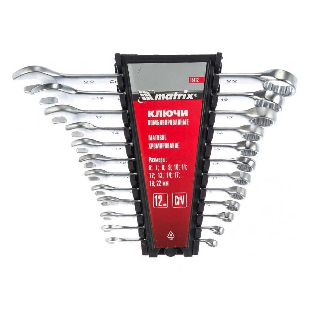 Вы можете приобрести «Набор ключей комбинированный, 12 предметов, Matrix, 6-22 мм, матовый хром, сталь, CrV, 15412» и другие товары в нашем интернет-магазине в Борисоглебске по низким ценам и с бесплатным самовывозом.