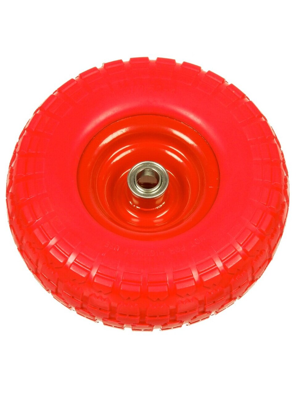 Колесо для тачки полиуретан PU, 4.1/3.5-4, втулка D20 мм от бренда Мастер Инструмент — это оптимальный выбор для тех, кто ценит надежность, долговечность и удобство в эксплуатации садовой или строительной техники. Современное полиуретановое колесо диаметром 260 мм и втулкой 20 мм идеально подходит для замены износившихся или поврежденных элементов на тележках, обеспечивая плавное и бесшумное движение по любым поверхностям. Благодаря бескамерной конструкции и наличию подшипника, использование становится максимально простым и эффективным, а обслуживание — минимальным.