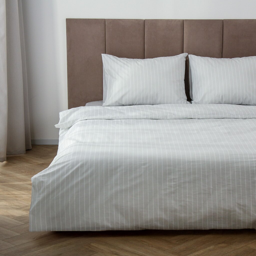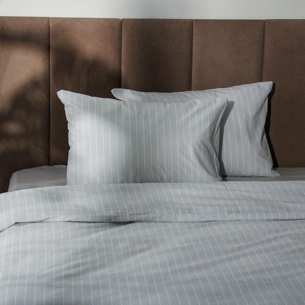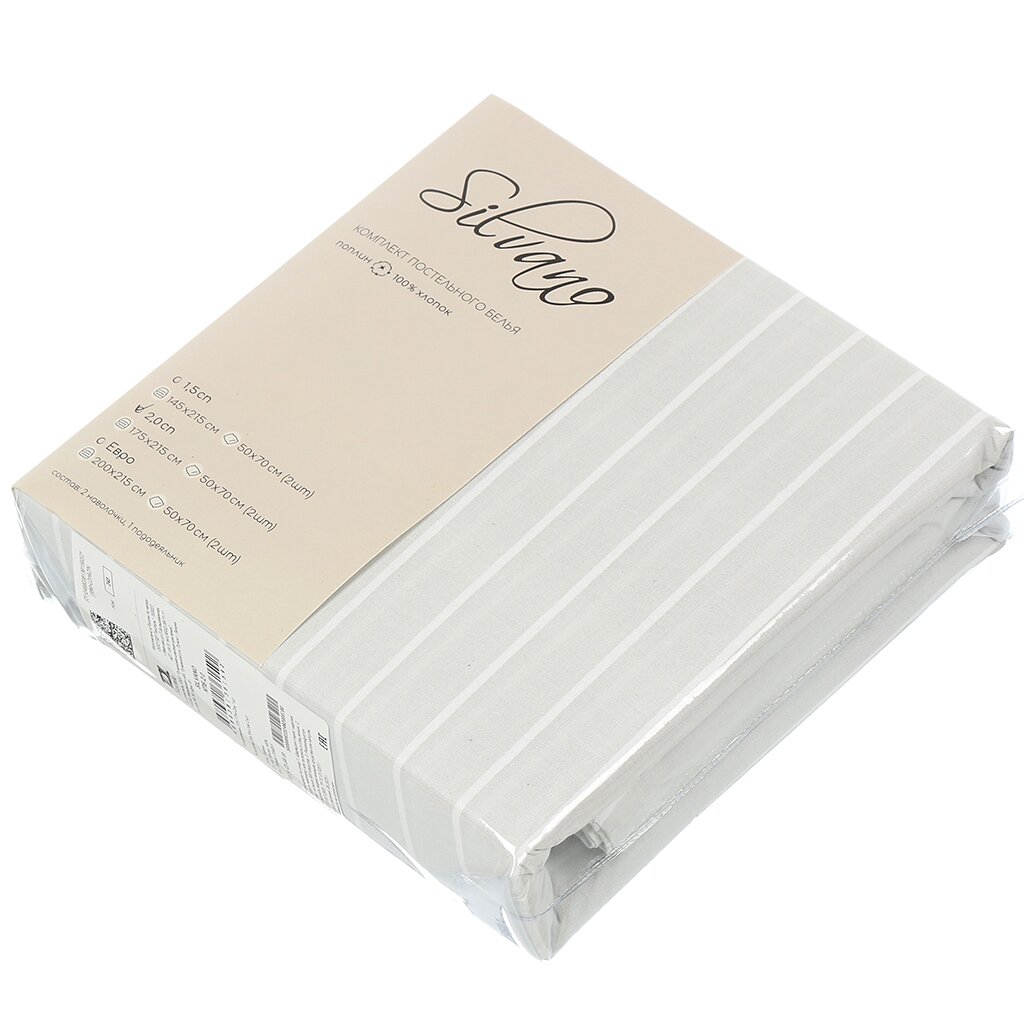 Постельное бельё 2-спальное Silvano 20465 — идеальный выбор для комфортного сна: 100% хлопок-поплин, стильный серый с полосками, подарочная упаковка.
