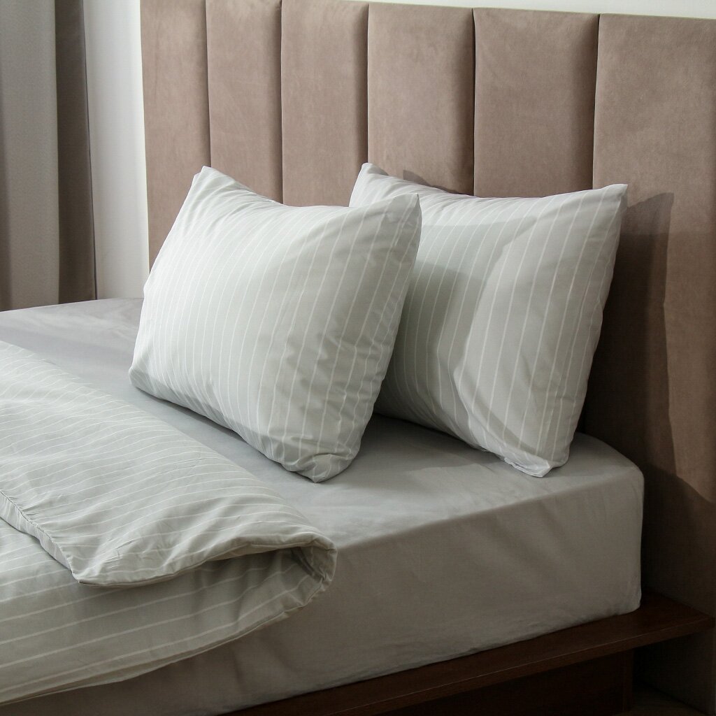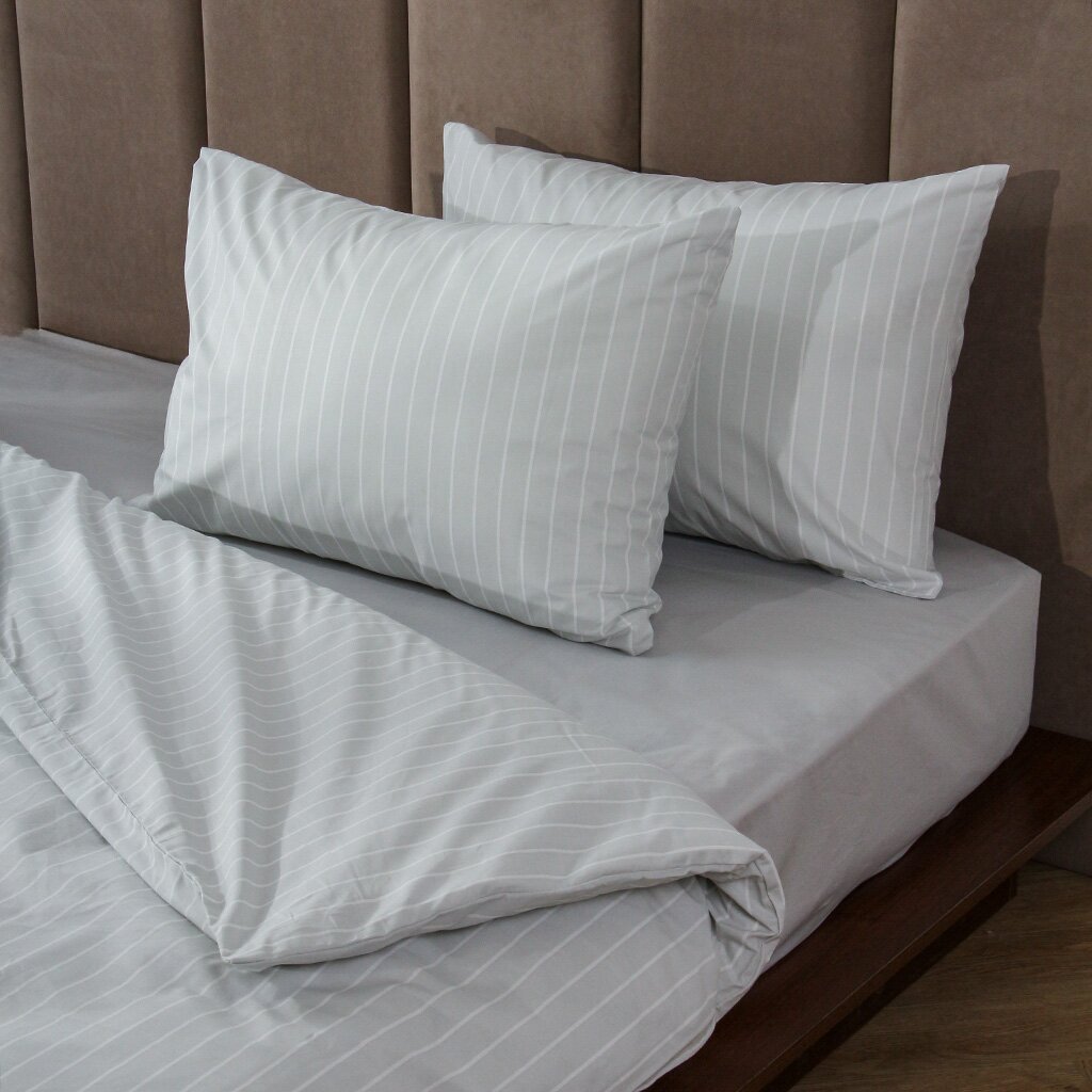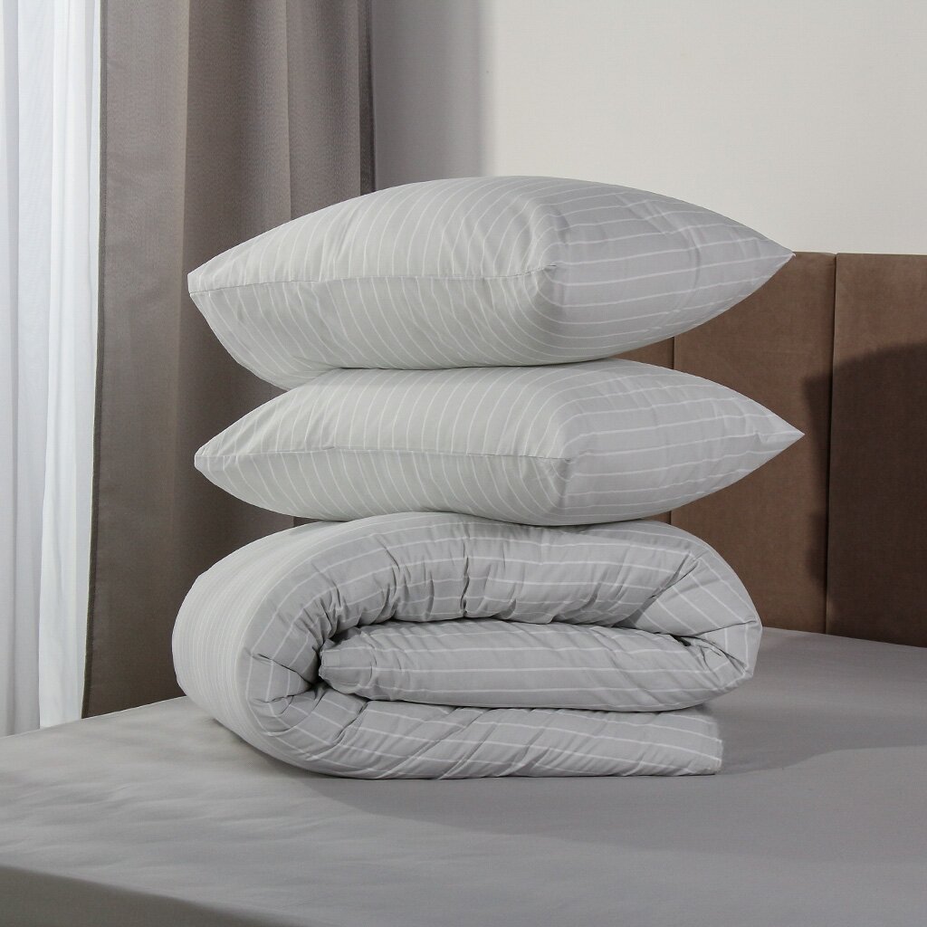Постельное бельё 2-спальное Silvano 20465 — идеальный выбор для комфортного сна: 100% хлопок-поплин, стильный серый с полосками, подарочная упаковка.