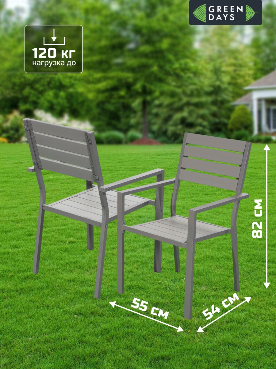 - Столешница и стулья изготовлены из материала Polywood (древесно-полимерный композит);