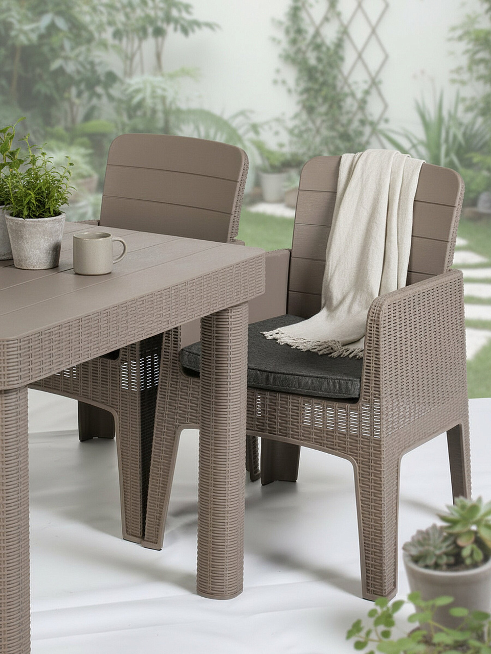 Роскошный комплект садовой мебели станет отличным дополнением для загородного дома или дачи. Благодаря своим качествам комплект садовой мебели Green Days отлично подойдет для постоянного использования на открытом воздухе с ранней весны до поздней осени. Мебель выполнена в изысканном дизайнерском решении, что позволяет ей гармонично вписываться в любое окружение.