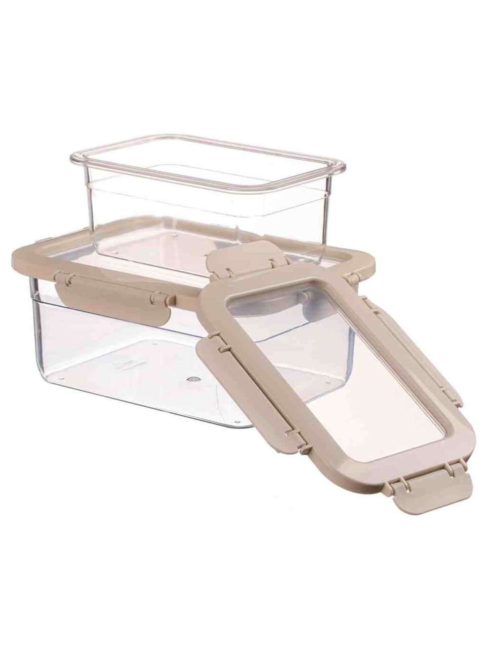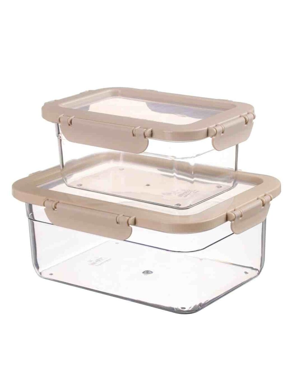 В комплекте 2 контейнера: объём 1 л и 2,2 л, оба прямоугольной формы, цвет — бежевый. Удобны для хранения и транспортировки разных типов продуктов.