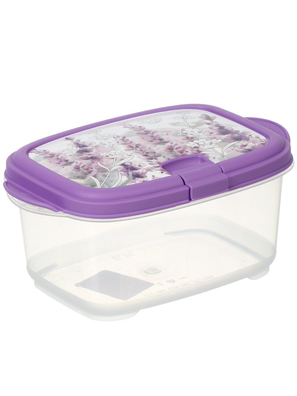 Контейнер пищевой Полимербыт Lavender 0.7 л: компактное хранение продуктов без запаха, клапан для свежести, подходит для СВЧ и посудомоечной машины.