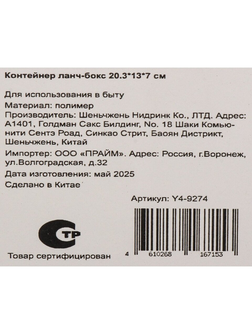- Практичность: безопасный пластик без запаха, оптимальный размер 20.3×13×7 см, подходит для СВЧ и повторного использования