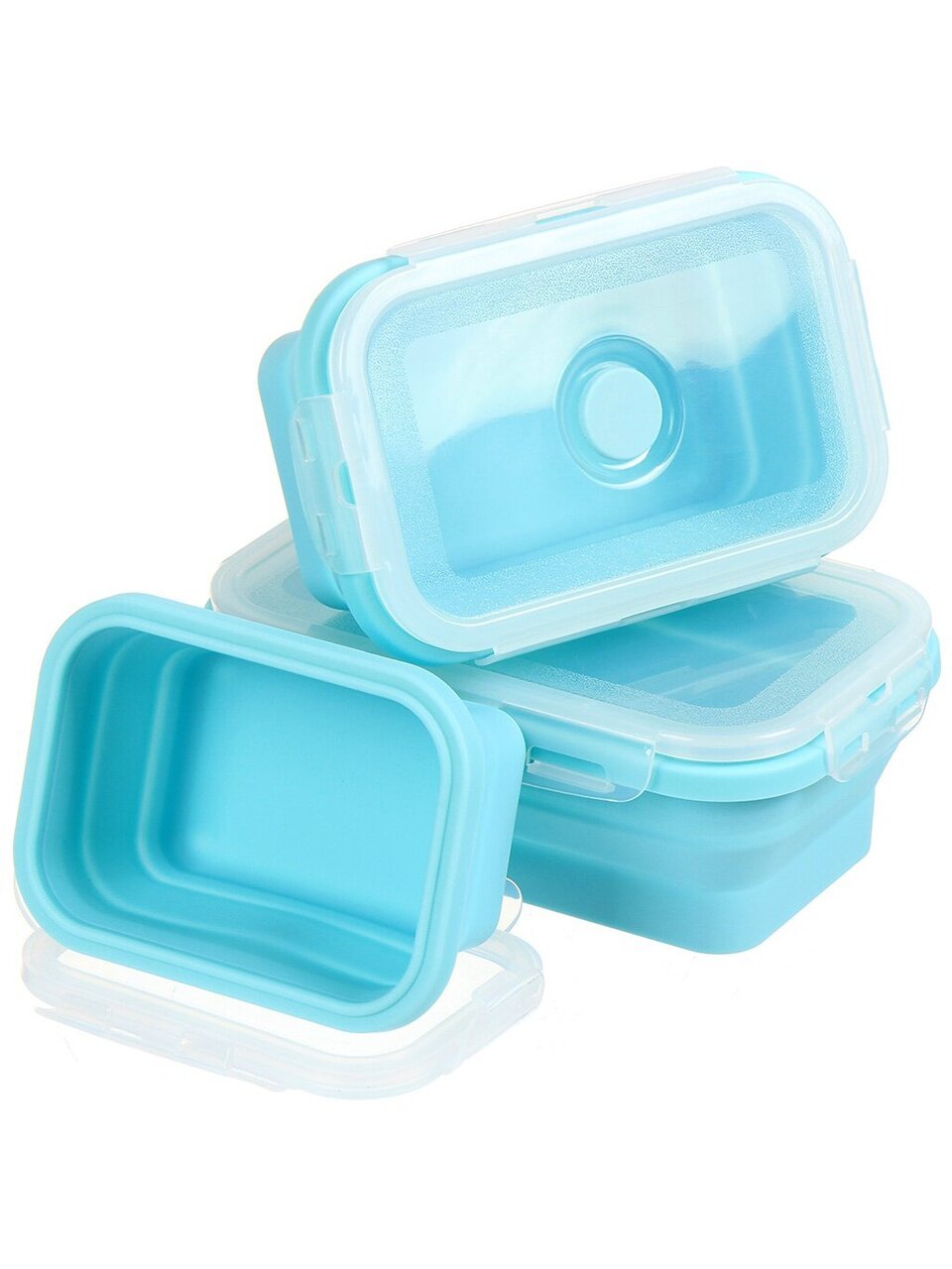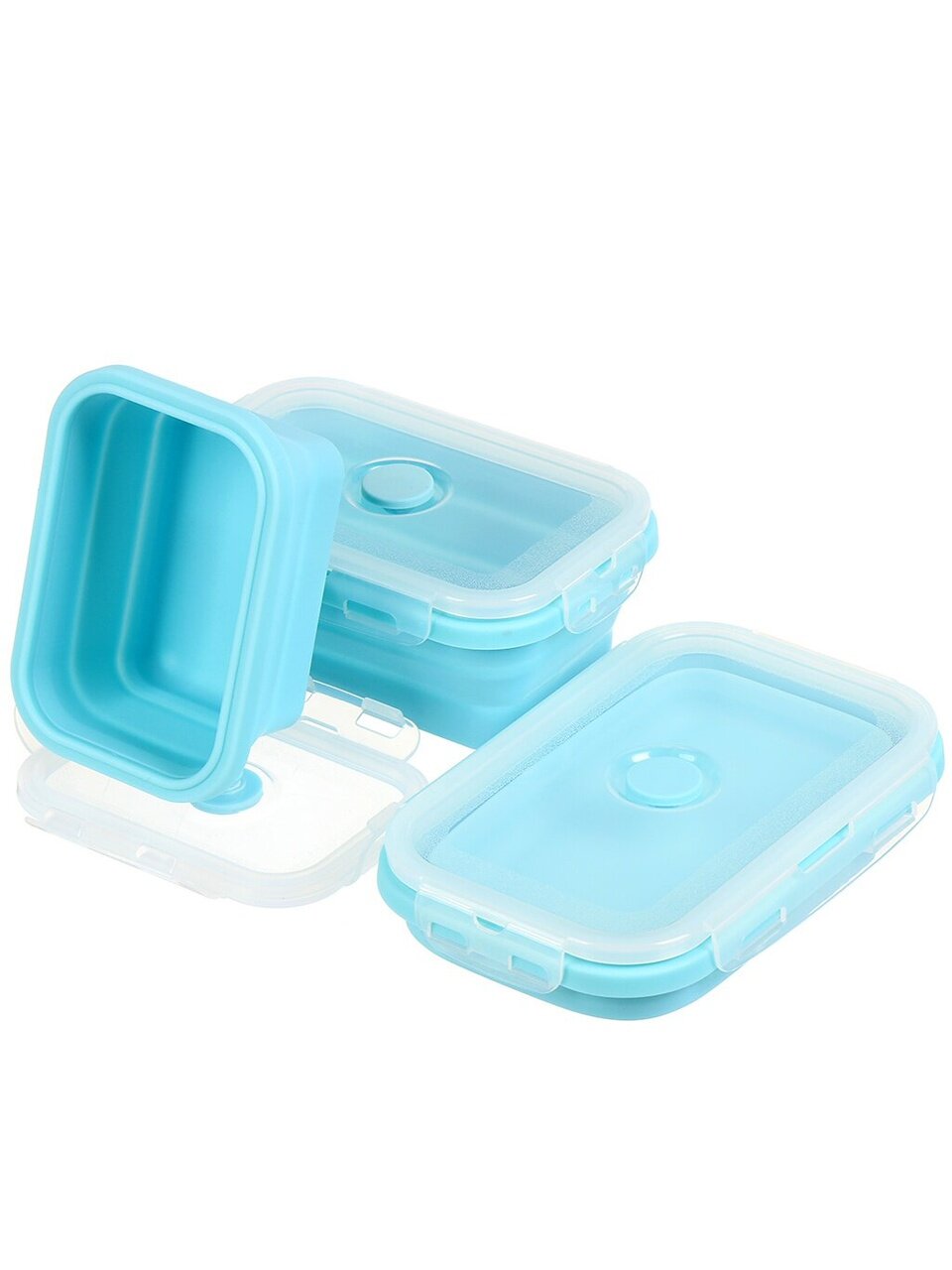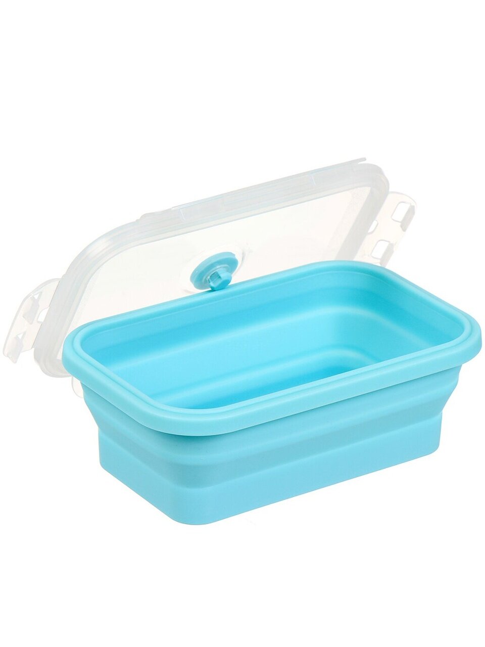 Контейнер складной 0.8 л голубой: компактное хранение, герметичность и универсальность для дома, офиса и дачи. Удобно брать с собой, легко мыть.