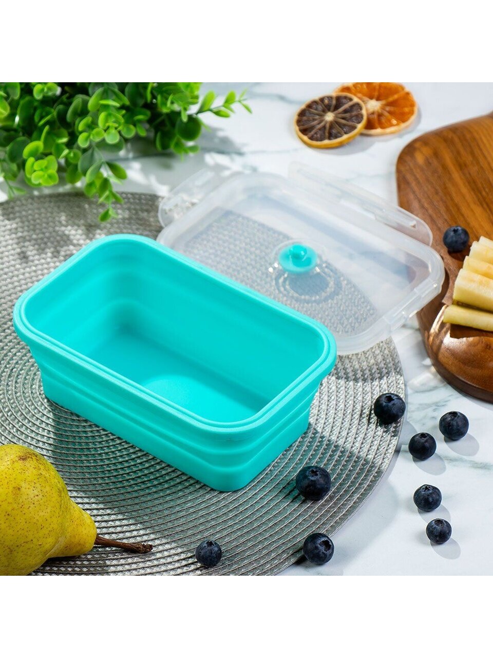 Контейнер пищевой складной 0.8 л — это удобное решение для хранения и транспортировки продуктов. Герметичная крышка с защёлкой предотвращает протекание, а силиконовые стенки позволяют сложить контейнер до минимального размера, что особенно важно для тех, кто ищет компактные аксессуары для кухни или путешествий. Благодаря универсальной форме и объёму, можно использовать для обедов на работу, хранения овощей, заморозки ягод или детских перекусов.