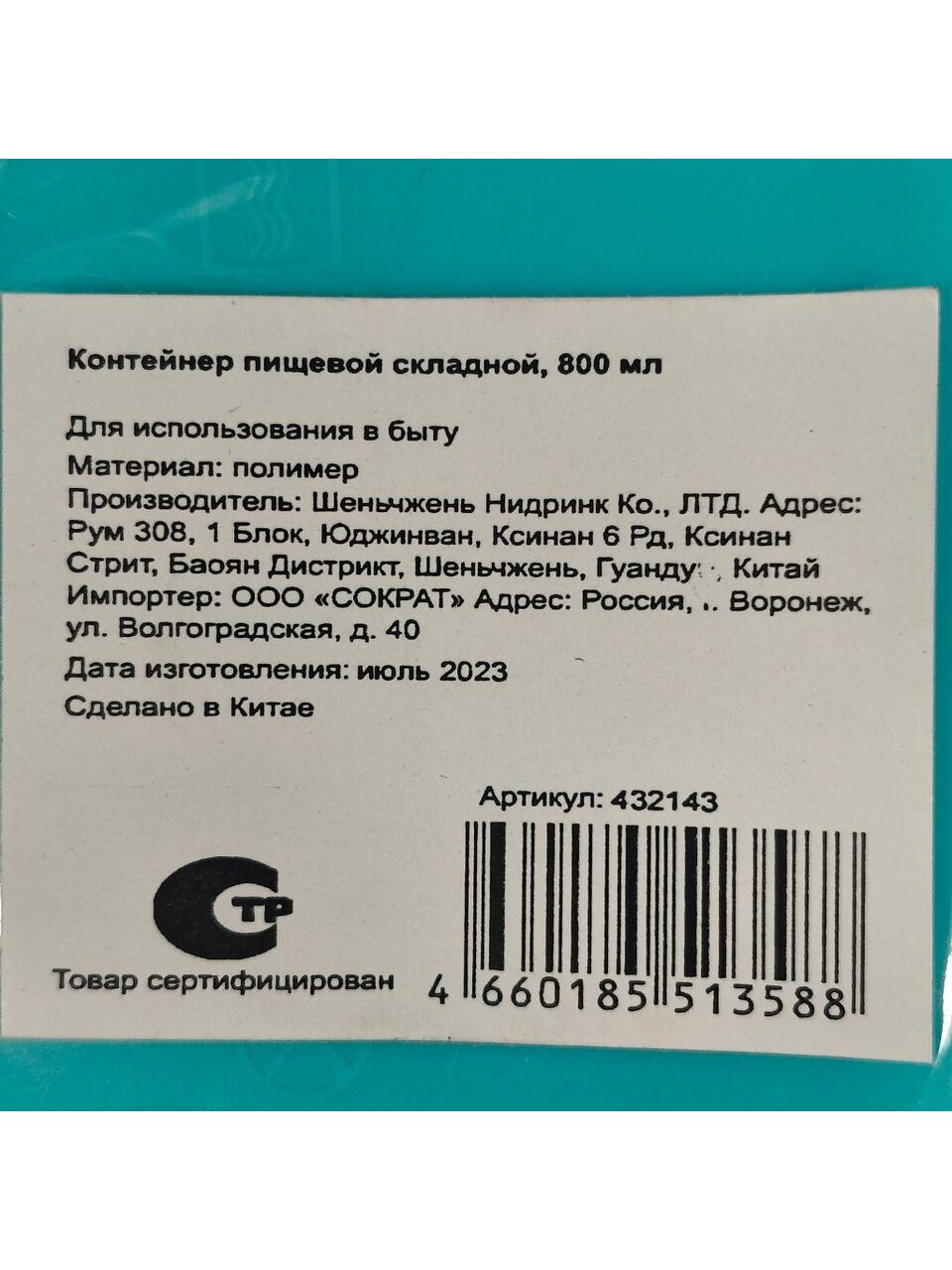 Закажите контейнер для пищи 0.8 л по выгодной цене — получите практичный аксессуар для хранения и транспортировки продуктов с гарантией безопасности и долговечности.