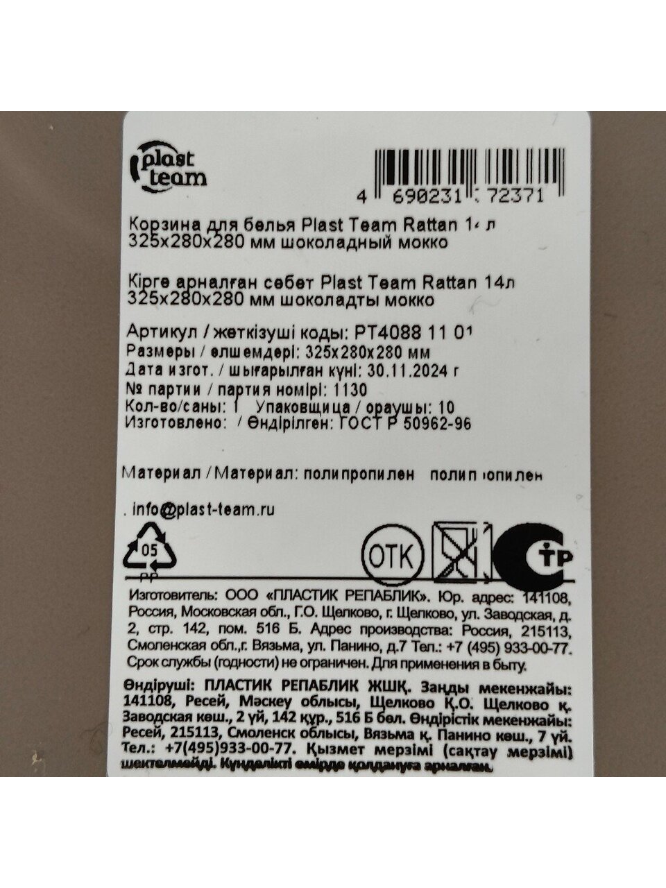 Вы можете приобрести «Корзина для белья, 14 л, 28х28х32.5 см, овальная, пластик, шоколадный мокко, с крышкой, Plast team, Rattan, PT408811» и другие товары в нашем интернет-магазине в Белгороде по низким ценам и с бесплатным самовывозом.