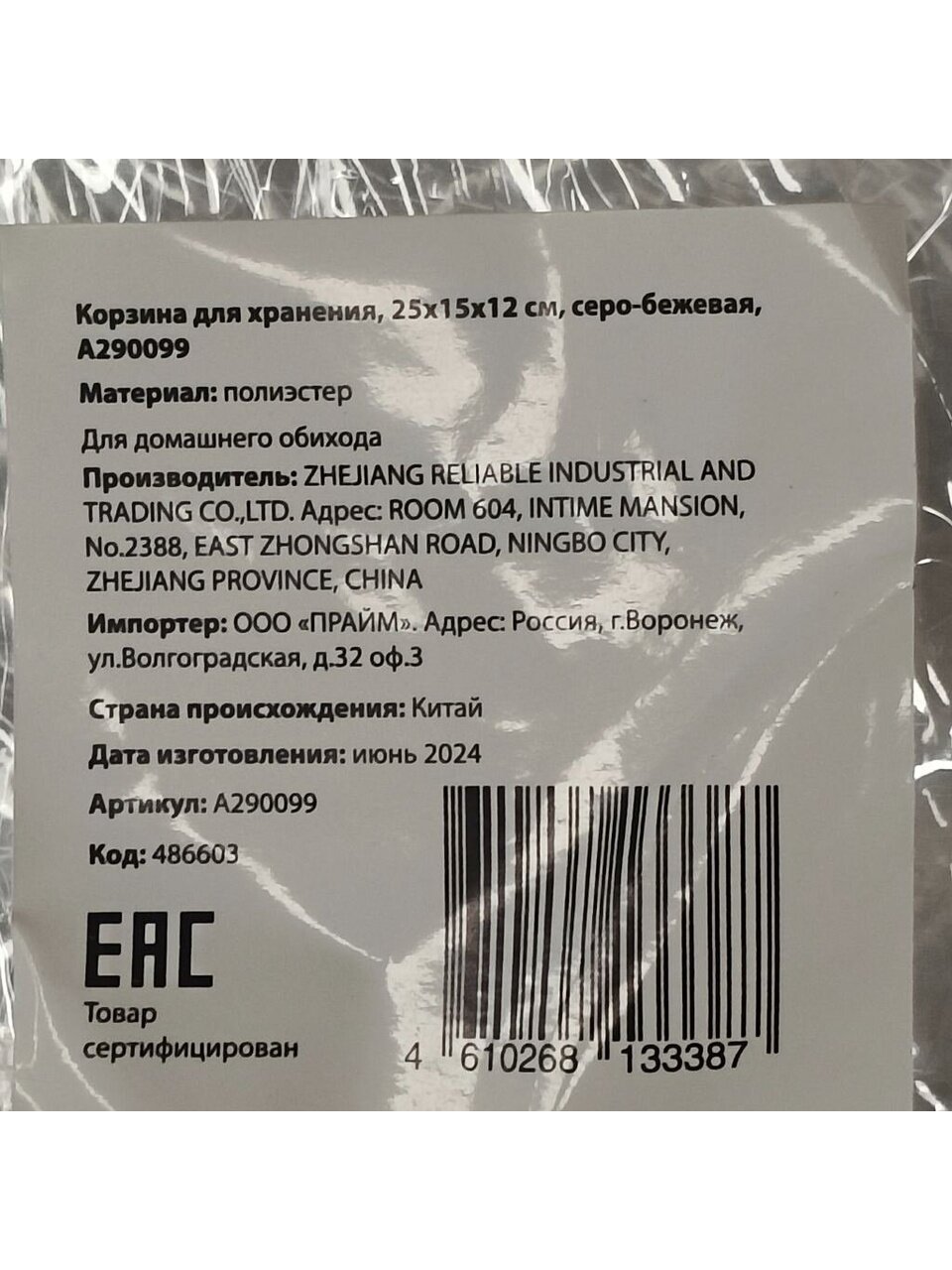 Ищете стильное и практичное решение для организации пространства? Серо-бежевая корзина для хранения размером 25х15х12 см станет идеальным выбором. Эта корзина сочетает в себе функциональность и элегантный дизайн, что делает её незаменимым аксессуаром для любого интерьера.