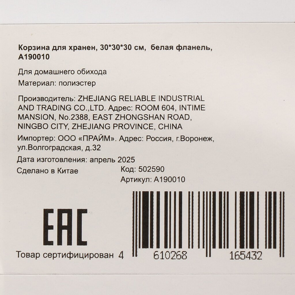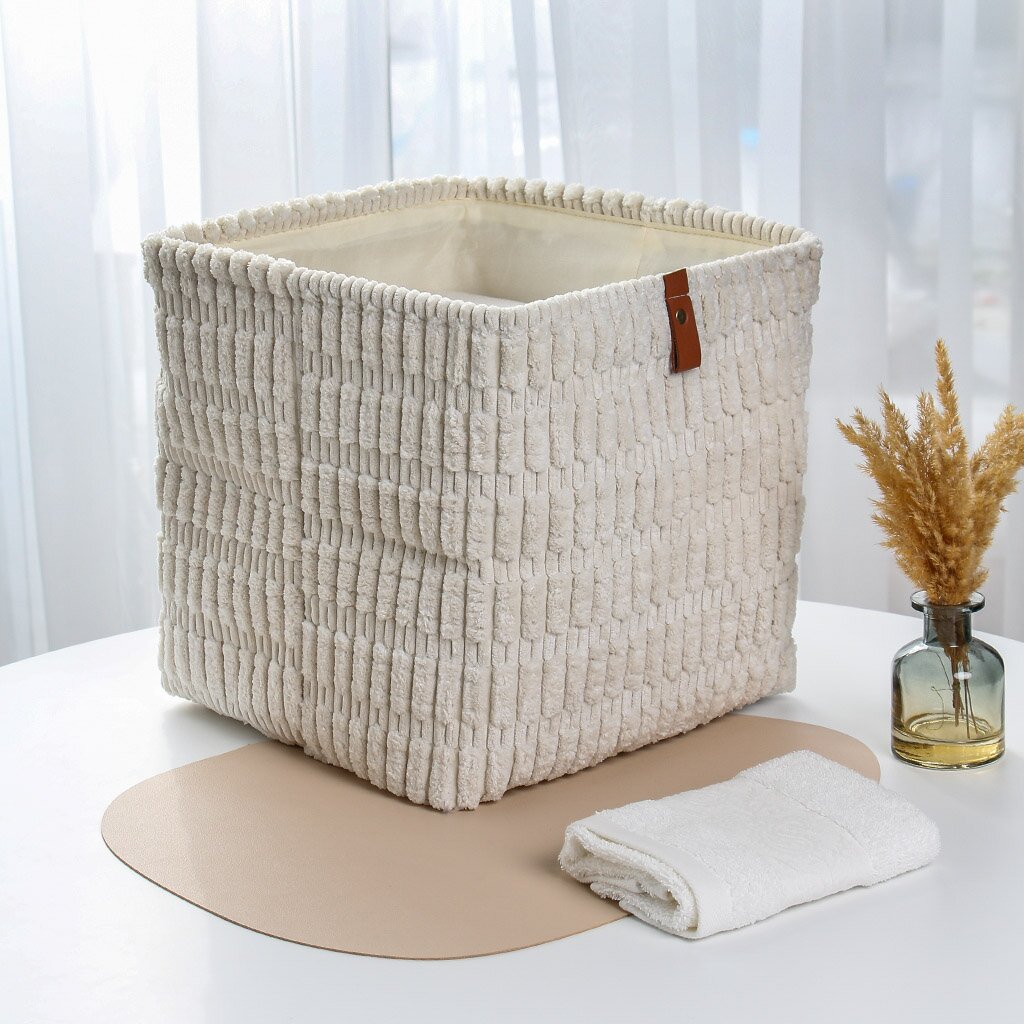 Стильная белая корзина для хранения 30х30х30 см из мягкой фланели: порядок в доме, уют и удобство — решение для спальни, детской или дачи.