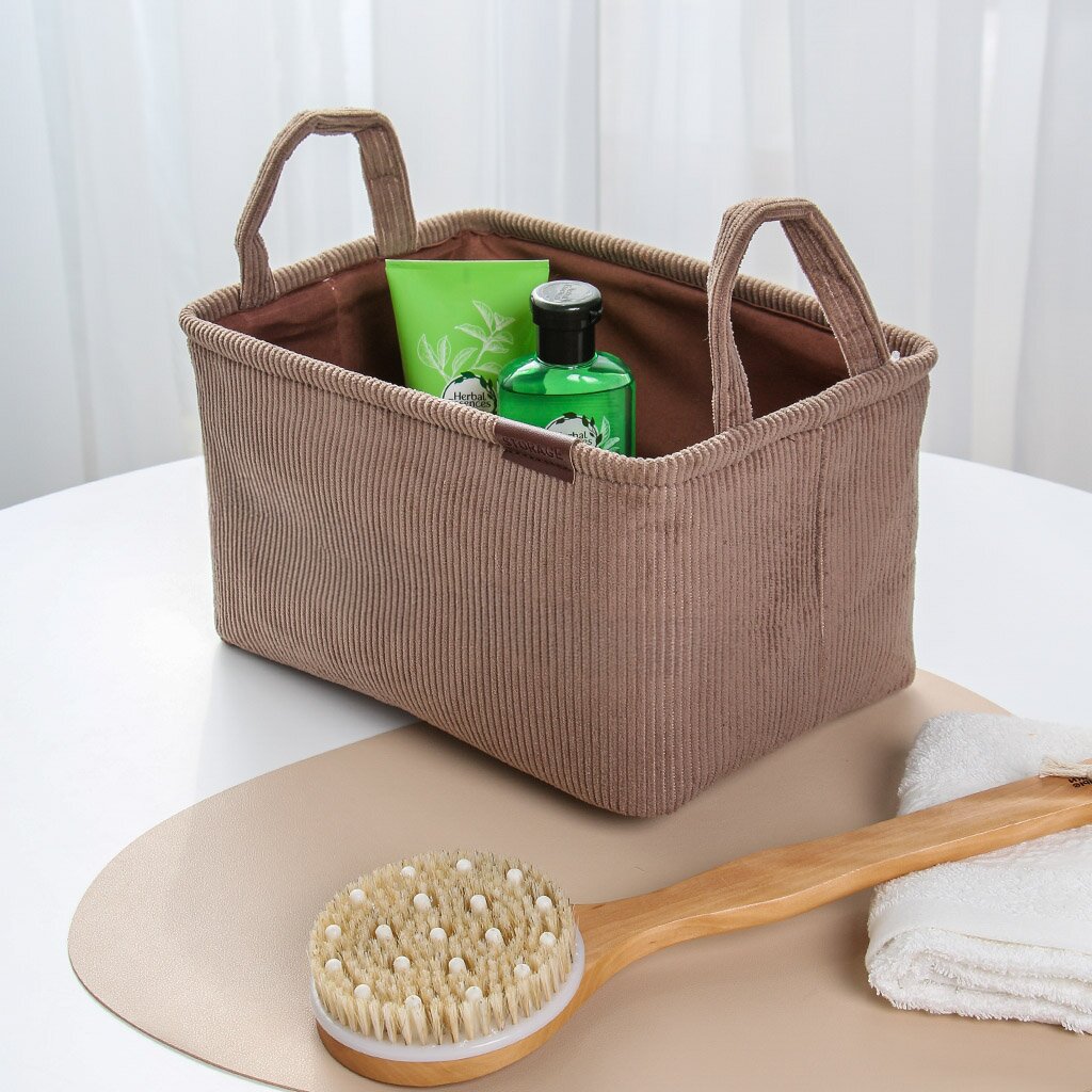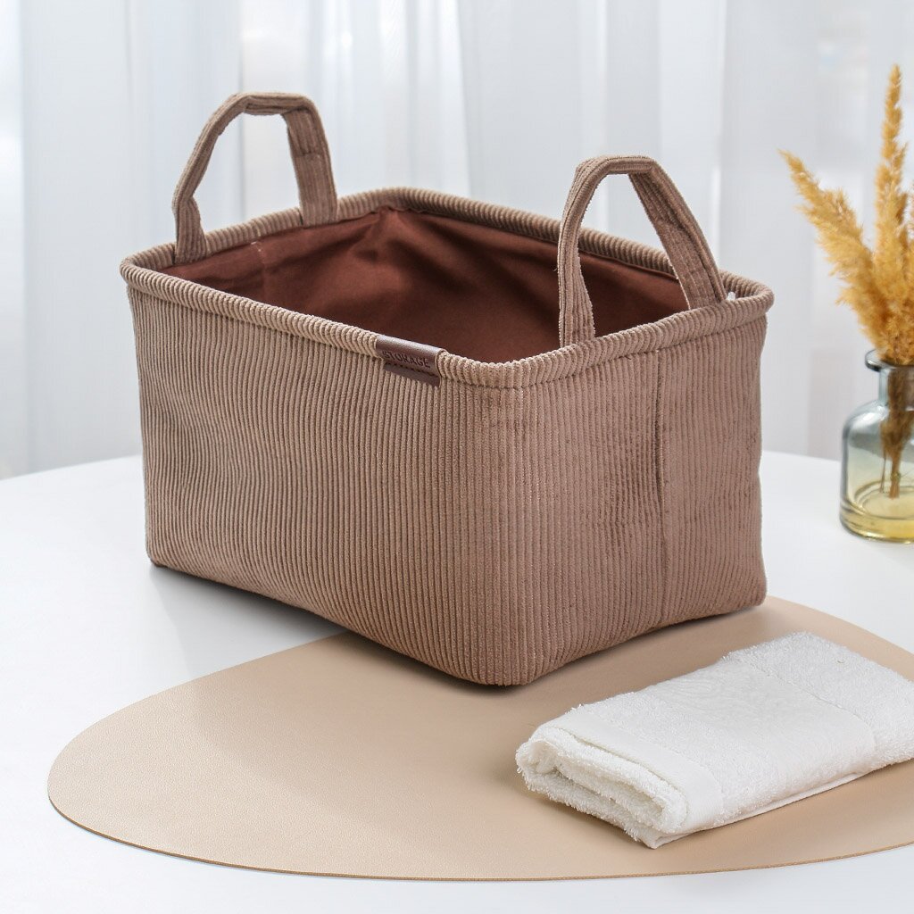 Универсальная корзина для хранения 30×20×16 см из коричневого вельвета с ручками — компактное и стильное решение для дома, дачи и организации пространства.