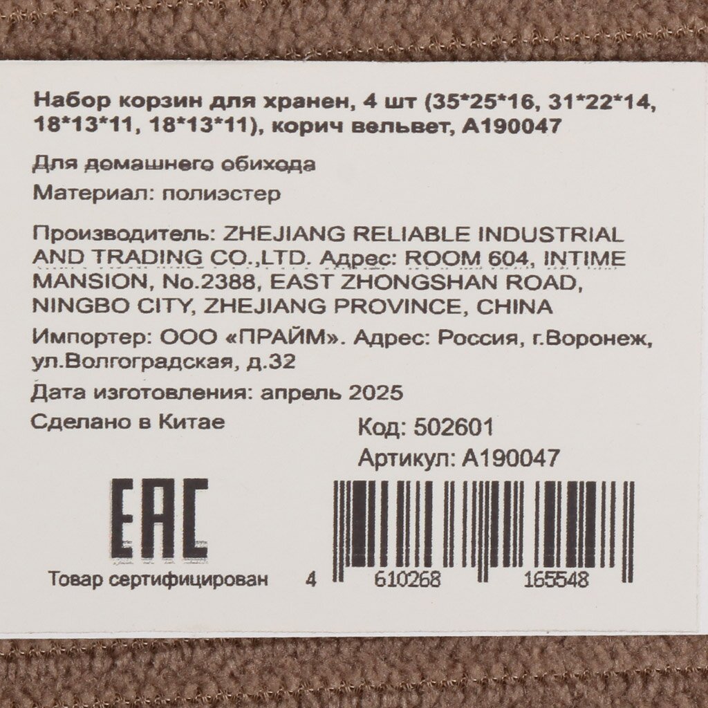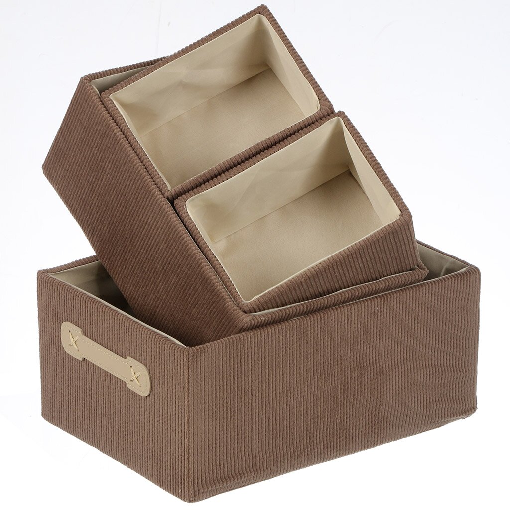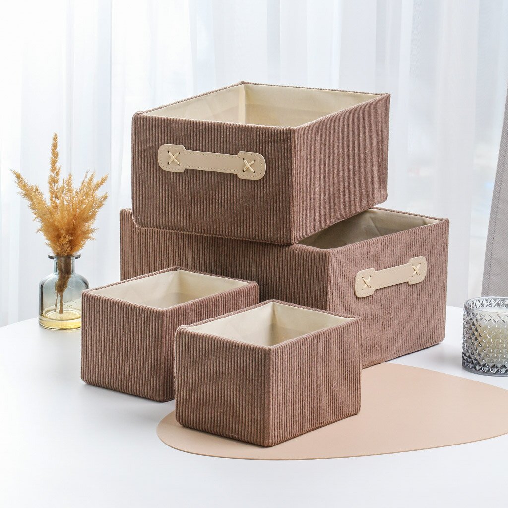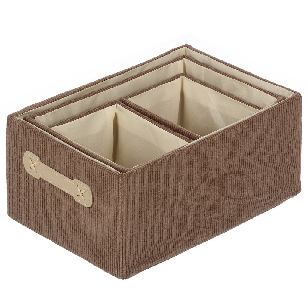 Набор корзин из вельвета — оптимальный выбор для тех, кто ищет недорогой и практичный способ организовать хранение вещей. Благодаря разным размерам, их легко использовать для хранения игрушек, аксессуаров, рукоделия или сезонных вещей. Вельветовая фактура не только приятна на ощупь, но и придаёт интерьеру уют, а коричневый цвет гармонирует с большинством современных стилей.