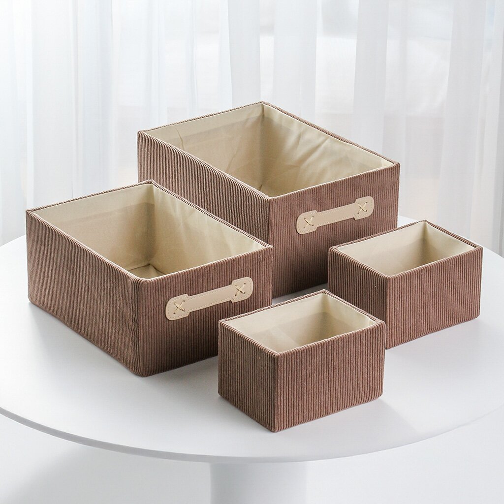 Часто спрашивают: «Как использовать корзины для хранения?» — просто разложите вещи по размеру, используйте их в шкафу, ванной или гостиной. В отличие от пластиковых или ротанговых аналогов, вельветовые корзины мягкие, не царапают поверхности и легко складываются для экономии места. Подходят ли они для хранения на даче? Да, благодаря прочному материалу и ручкам для переноски, их удобно брать с собой.