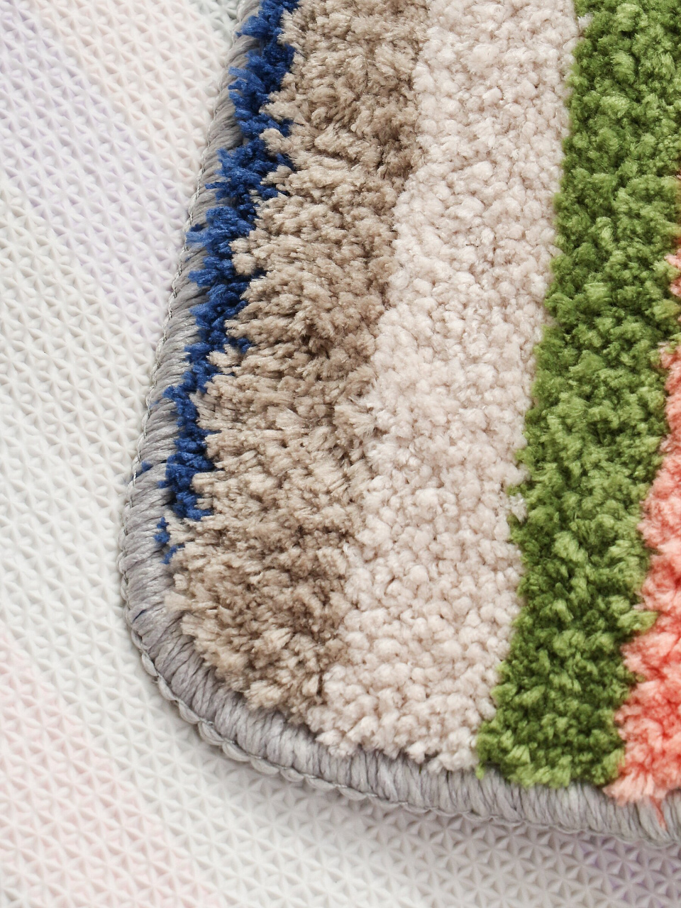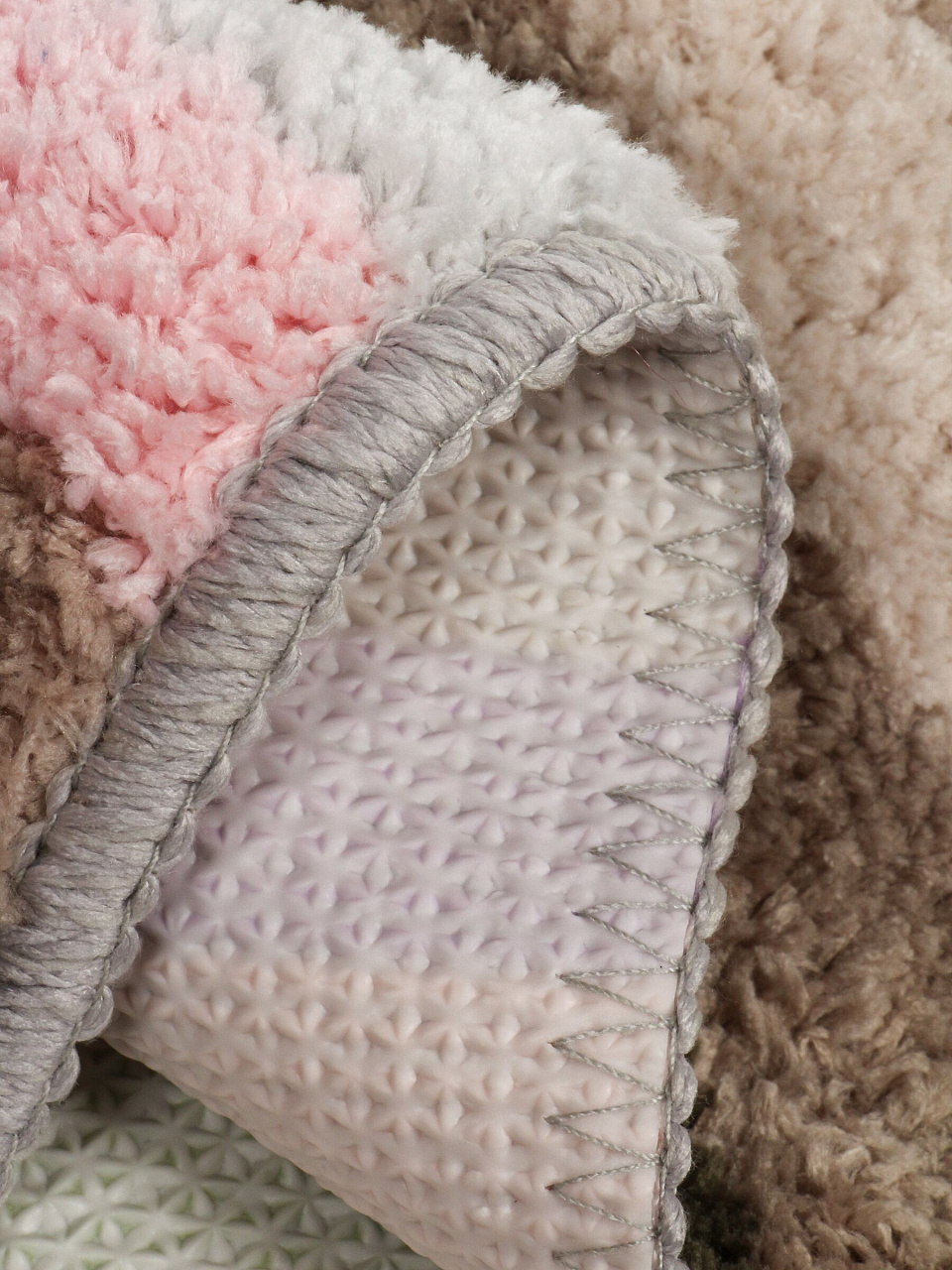 Материал — 100% полиэстер, основа резиновая. Коврик легко стирается вручную или в стиральной машине, быстро сохнет и сохраняет форму.