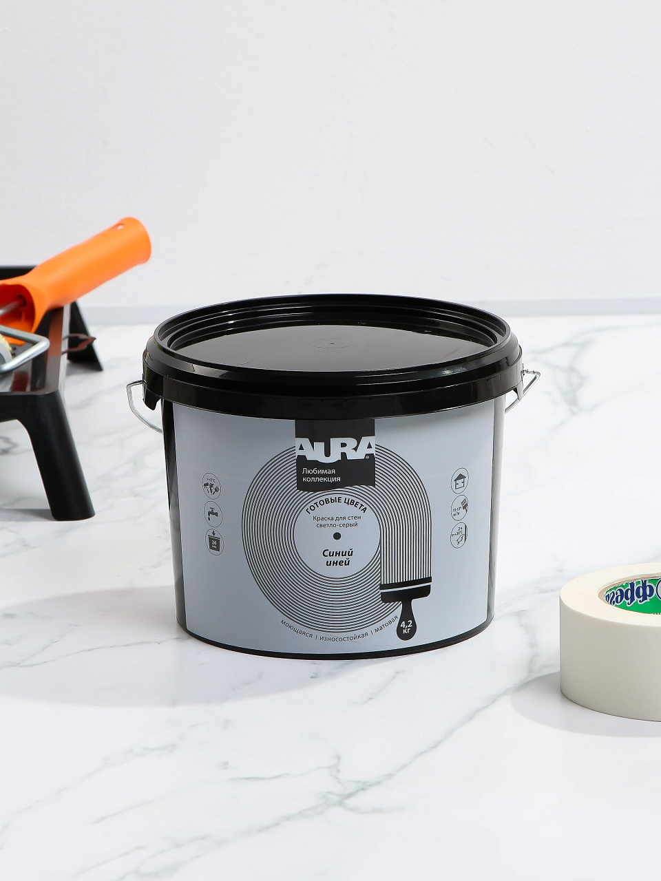 Вы можете приобрести «Краска водно-дисперсионная, Aura, акриловая, интерьерная, моющаяся, влагостойкая, матовая, синий иней, 4.2 кг» и другие товары в нашем интернет-магазине в Астрахани по низким ценам и с бесплатным самовывозом.