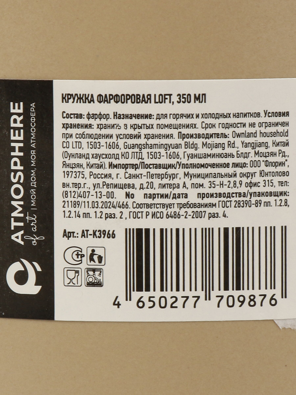 Вы можете приобрести «Кружка фарфор, 350 мл, Loft, Atmosphere, AT-K3966» и другие товары в нашем интернет-магазине в Старом Осколе по низким ценам и с бесплатным самовывозом.