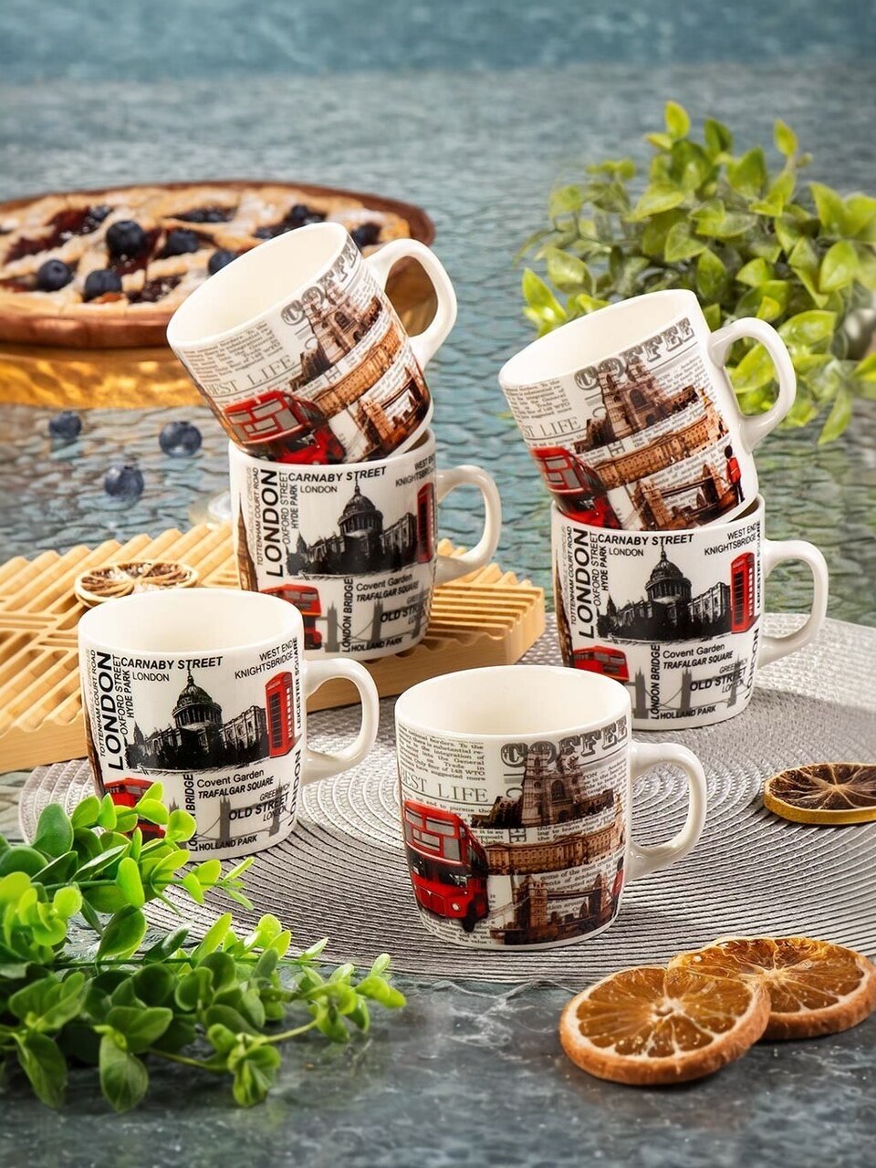 - Уникальный дизайн с мотивами Лондона и Италии — каждая кружка выделяется, добавляя атмосферу уюта и путешествий