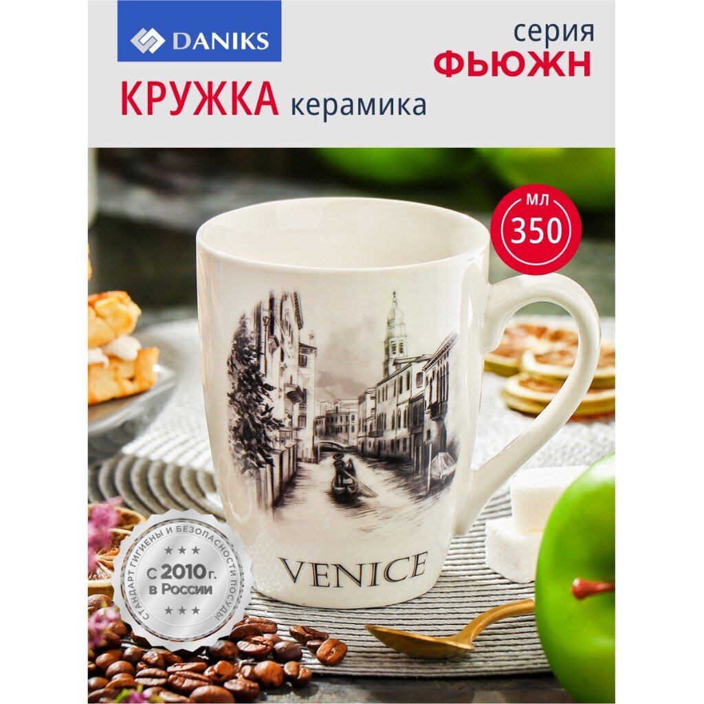 Керамическая кружка Daniks Фьюжн 350 мл — стильный выбор для дома и офиса: прочная, подходит для СВЧ и посудомоечной машины, доступна в разных цветах.