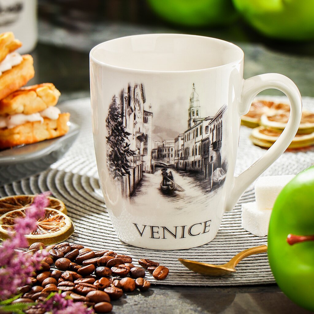 Объем кружки составляет 350 мл, вес — 280 г, что делает ее удобной для повседневного использования и транспортировки.