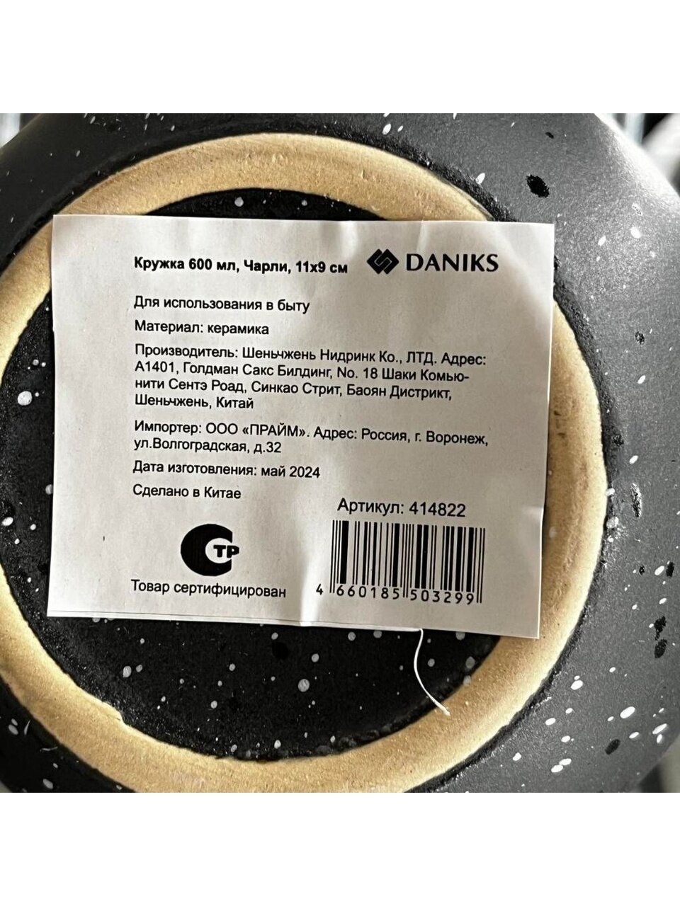 Керамическая кружка Daniks Чарли 600 мл: стильный выбор для дома и офиса, подходит для СВЧ и посудомоечной машины. Большой объем — максимум комфорта каждый день.