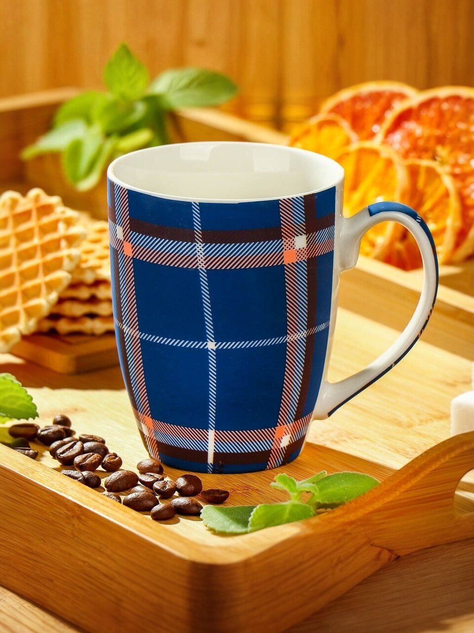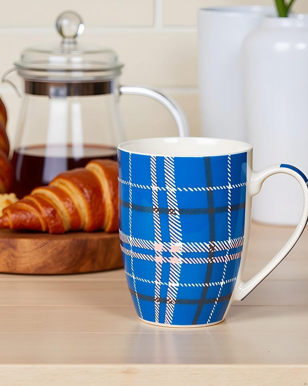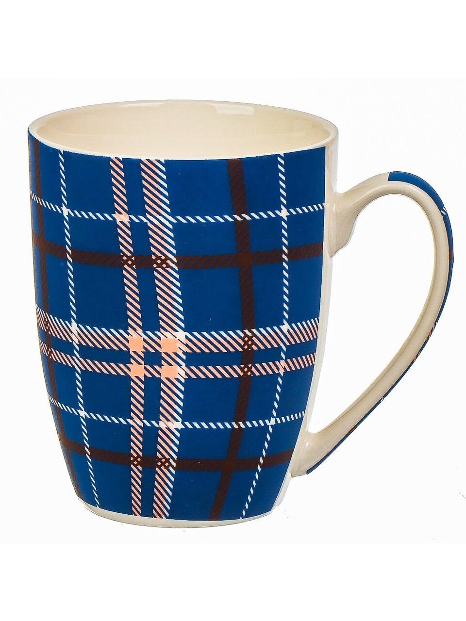 Керамическая кружка 350 мл «Синяя клетка» — стильный выбор для дома и офиса: подходит для СВЧ и посудомоечной, универсальный подарок на каждый день.